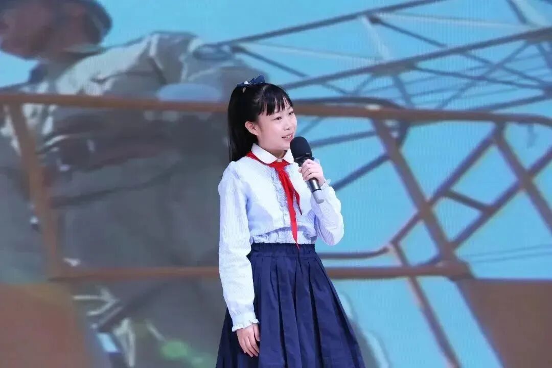 “他日龙啸凌云志,定当热血扶摇起。”桥头小学徐诗文同学在演讲中手持红扇,道出中国人的信仰。钢城四小赵青檀同学家住工人村街道青宜居社区,紧邻戴家湖公园,曾是华中地区最大的棚户区和煤渣填埋场,她以小小主人翁的视角讲述了这两个地方是如何蝶变焕新的,巨大的变迁不仅得益于党对人民的关爱,也得益于群众的自觉守护。钢城一小张翔睿同学带领大家“走进”历史中的武汉钢铁厂,从武钢一号高炉的破土动工,到如今建成国家工业遗址公园,他希望鲜活的绿色不只出现在自己的家乡,而是铺满祖国的大好河山。吉林街小学范曌曦同学说,我们不仅要继承中国科技人的“志”气,更要让更多中国“智”造享誉世界。钢城八中周孝璇同学和武钢实验学校宛子皓同学,分享了苦难辉煌的革命历史,发出“请党放心,强国有我”的铮铮誓言。