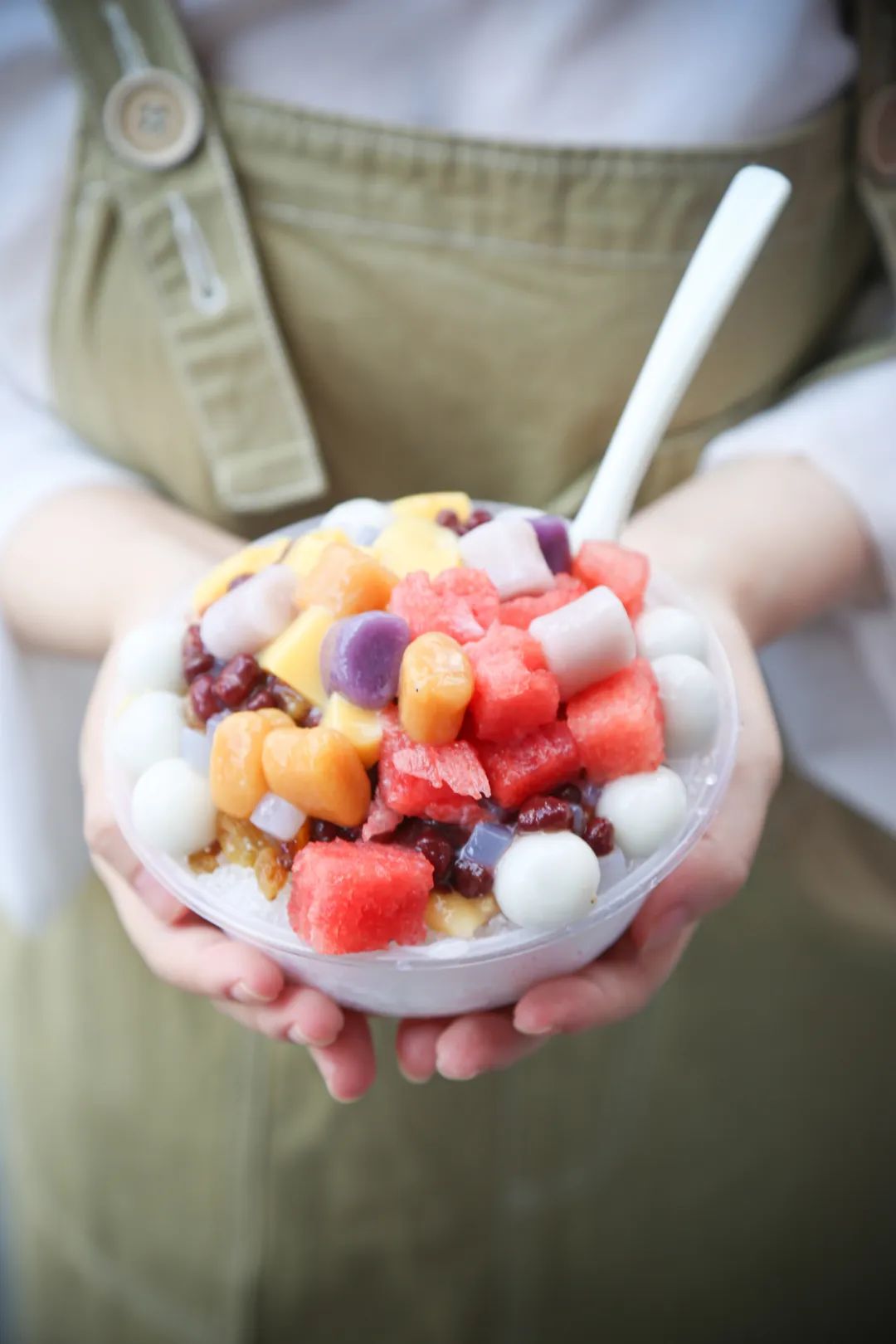 一勺下去,甜而不腻的红糖水搭配着清凉爽口的冰粉,糯叽叽的小汤圆和芋圆,滑溜溜的椰果和布丁……精彩纷呈的滋味轮番刺激着味蕾,快乐涌上心头,一瞬间便仿佛回到了多年前那个放学的午后。