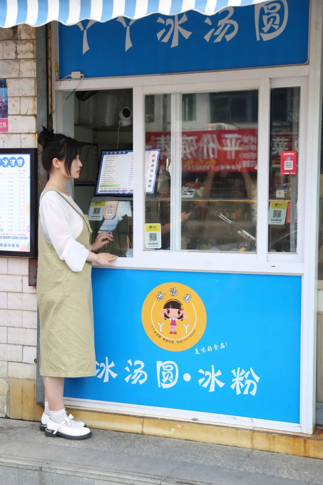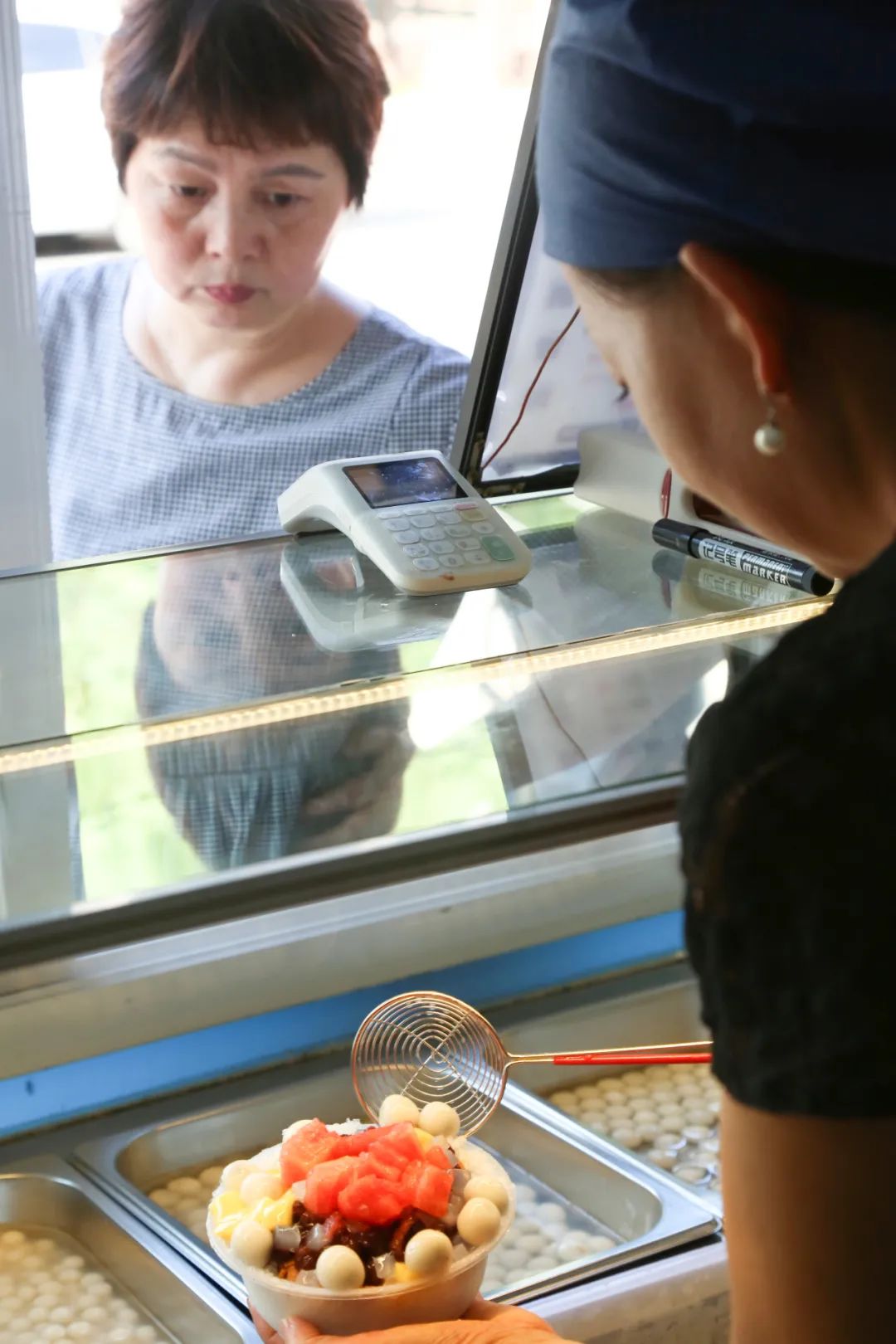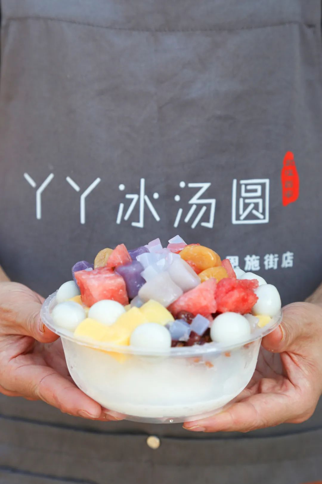 “正在排队啦,马上就好,保证很好吃!”顺着声声雀跃的对话,仔细一瞧,原来是家名叫『丫丫冰汤圆』的甜品店已经排起了队伍,店铺前顾客们选好心仪的甜品,正等待着老板将最后的配料添加完成。