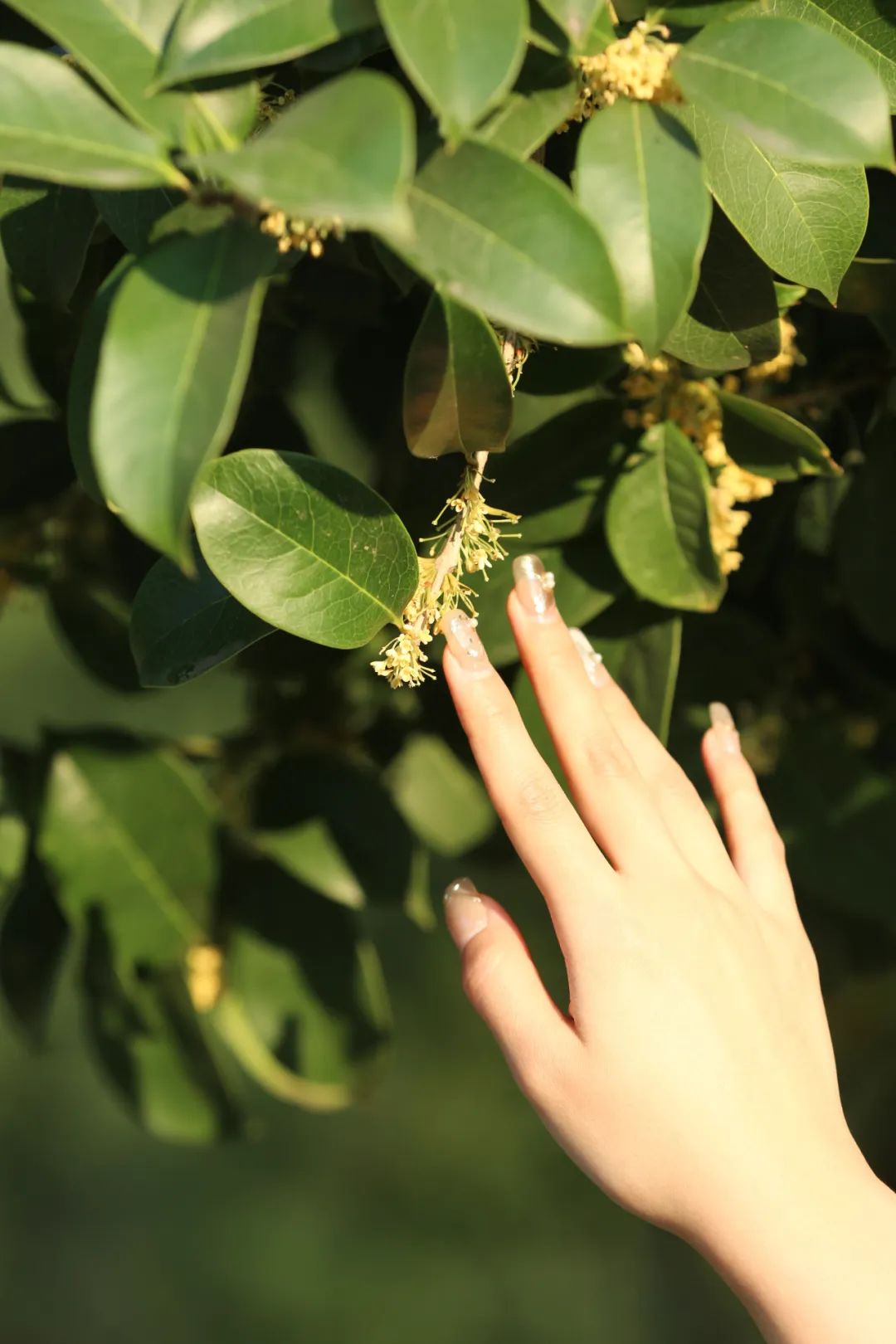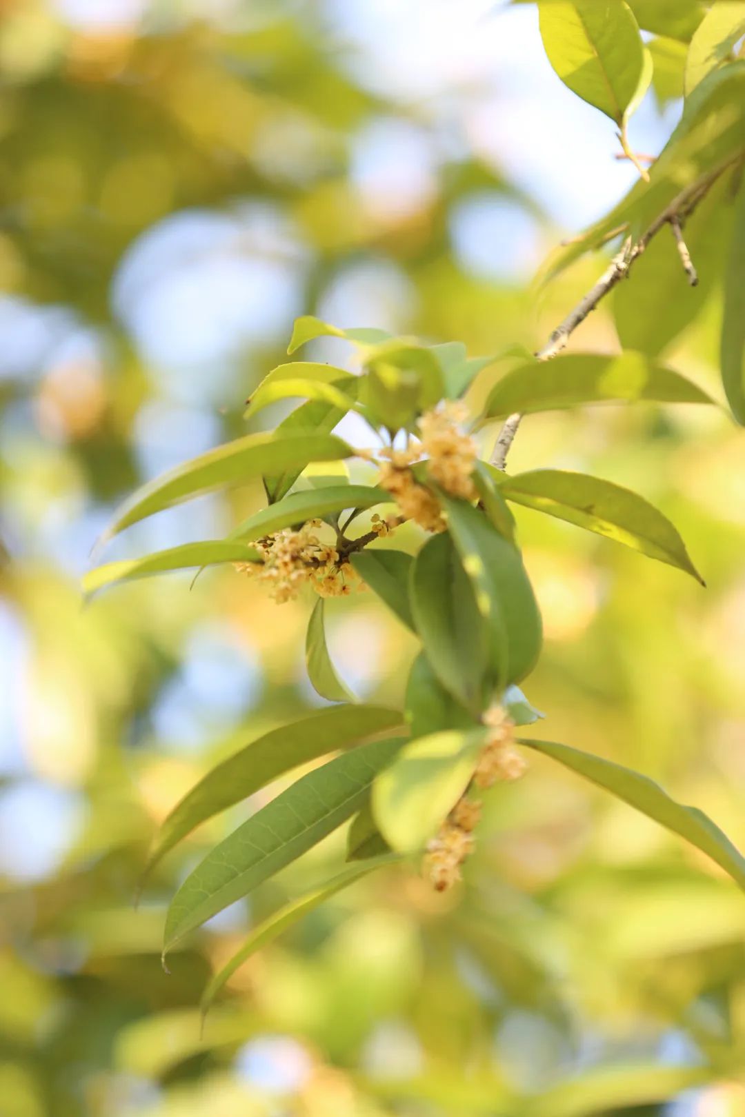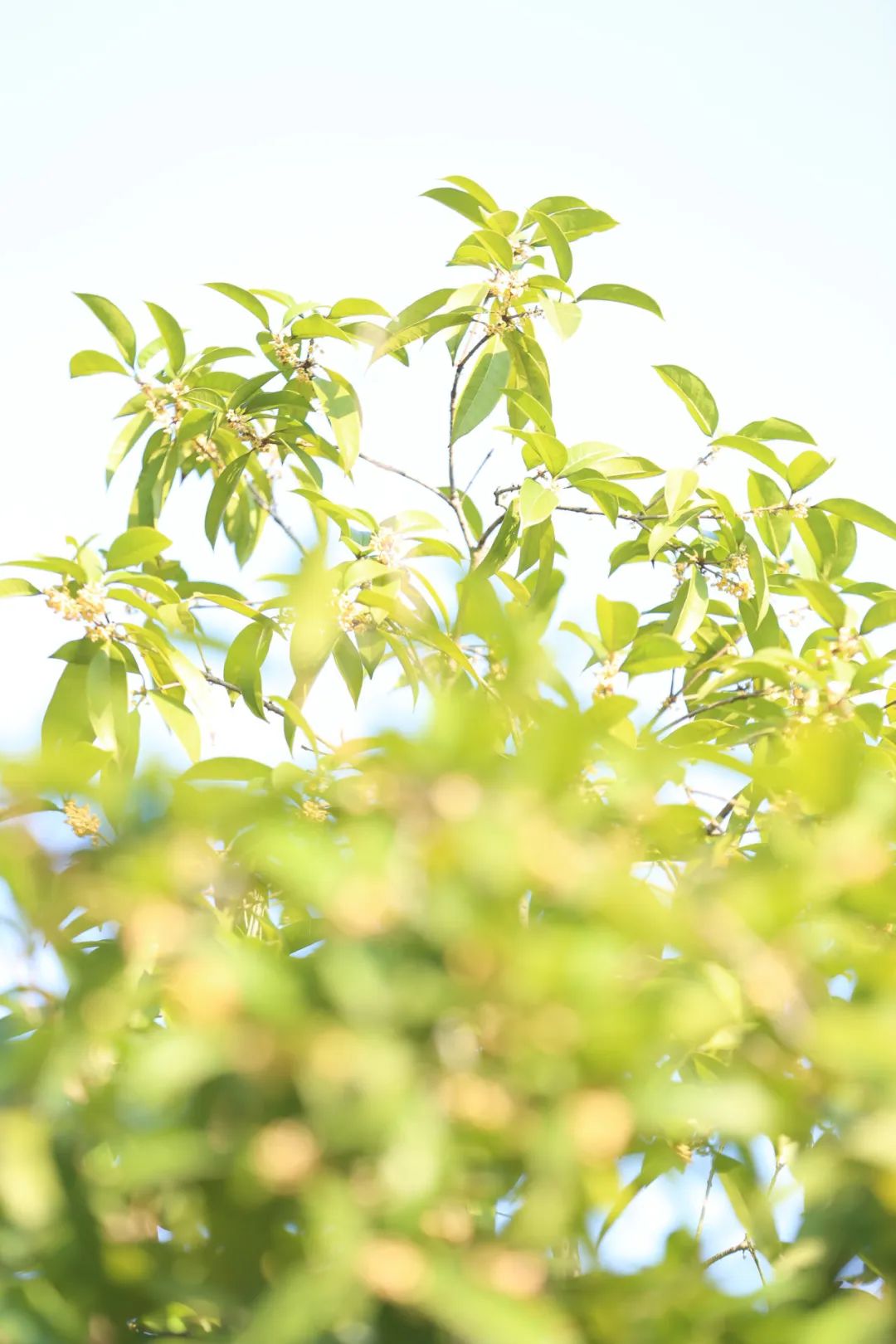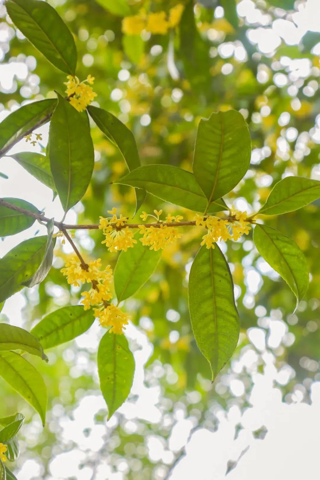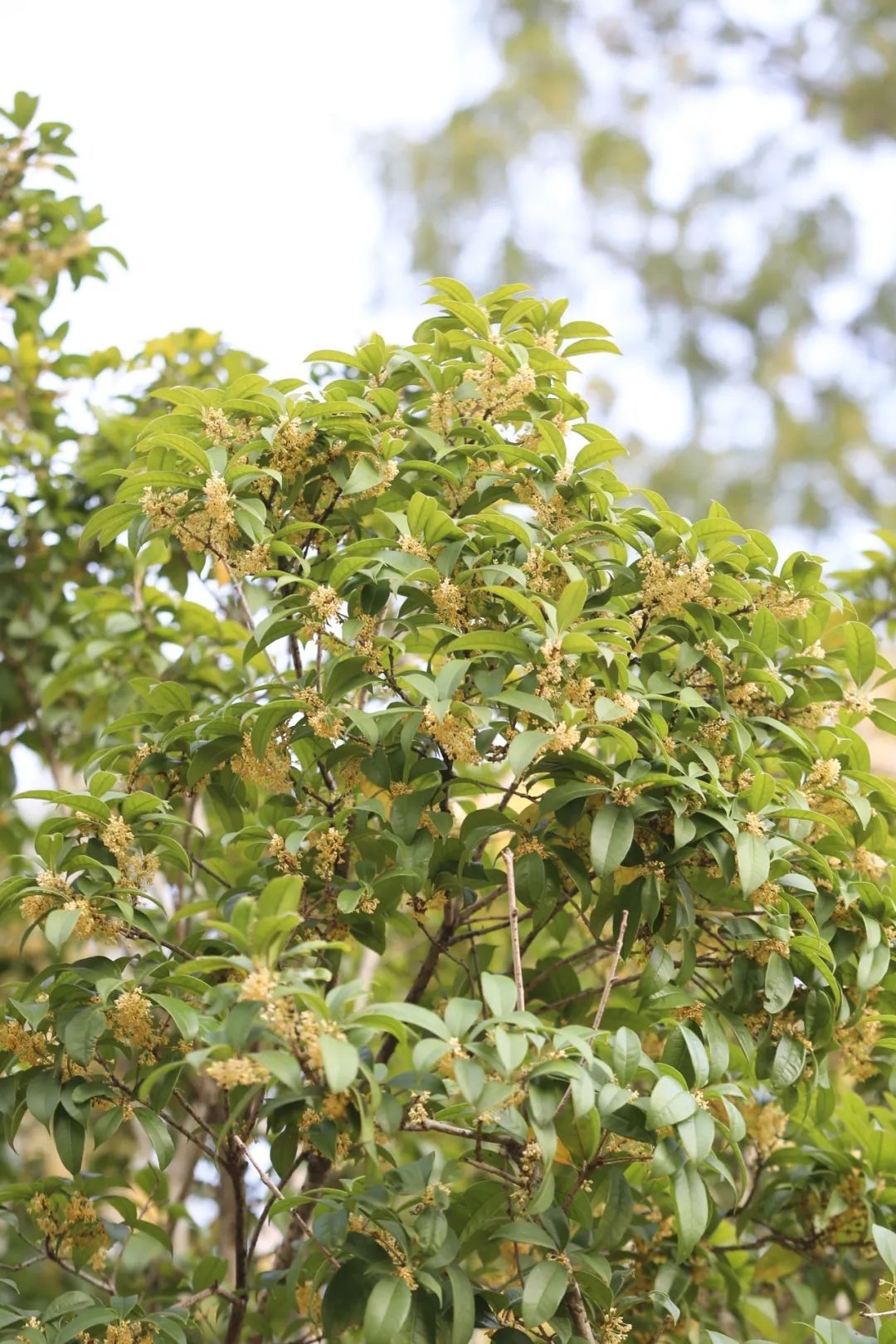 一根根枝丫上,错落的桂花隐藏其中,如点点繁星,可爱的劲头就像在和游人玩着躲迷藏。