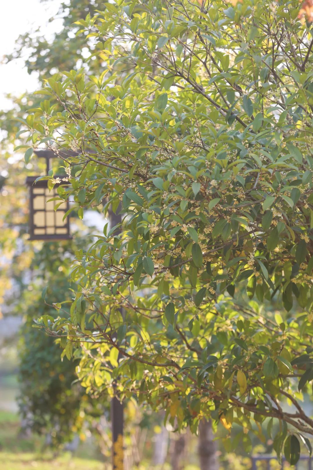 不同于其他公园里的桂花只是零星开放,这里的桂花依旧保持着如初开时的气势,颇有种后来居上的惊艳之感。