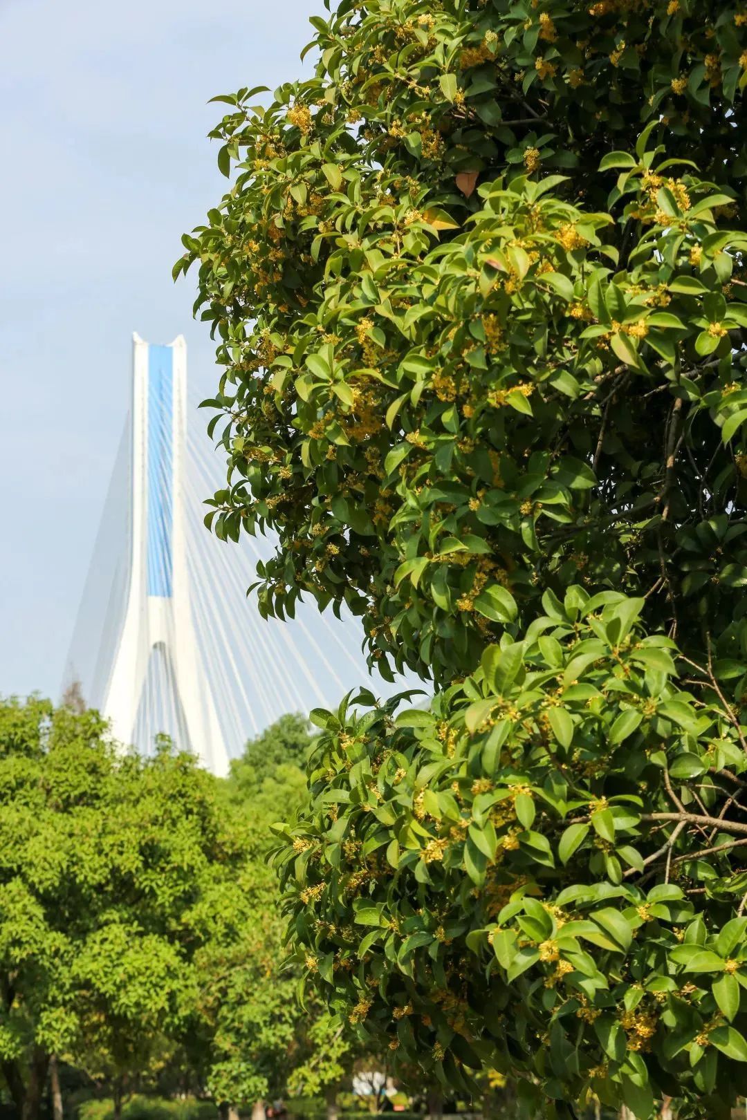 除了这些地方,在和平公园、南干渠游园、武丰闸湿地公园、临江大道、沿港路等公园、绿化带里还可寻到最后一波开放的桂花。
