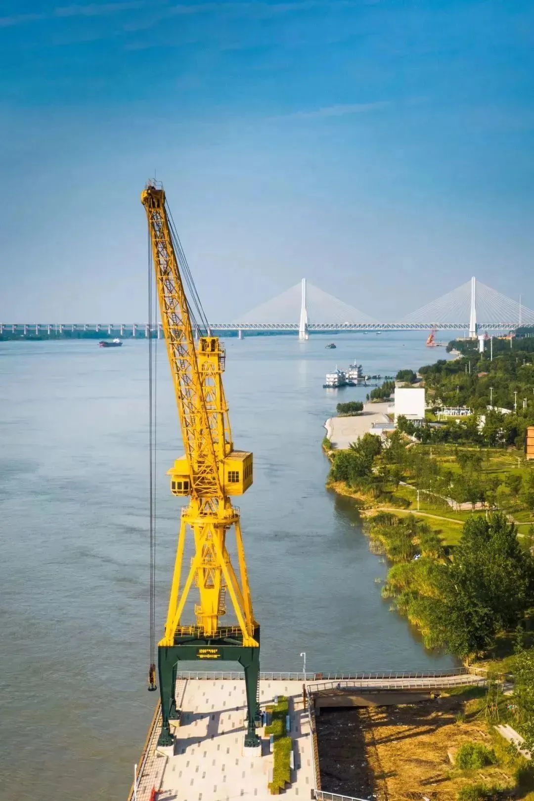 吊进江面的轮船或江岸的汽车