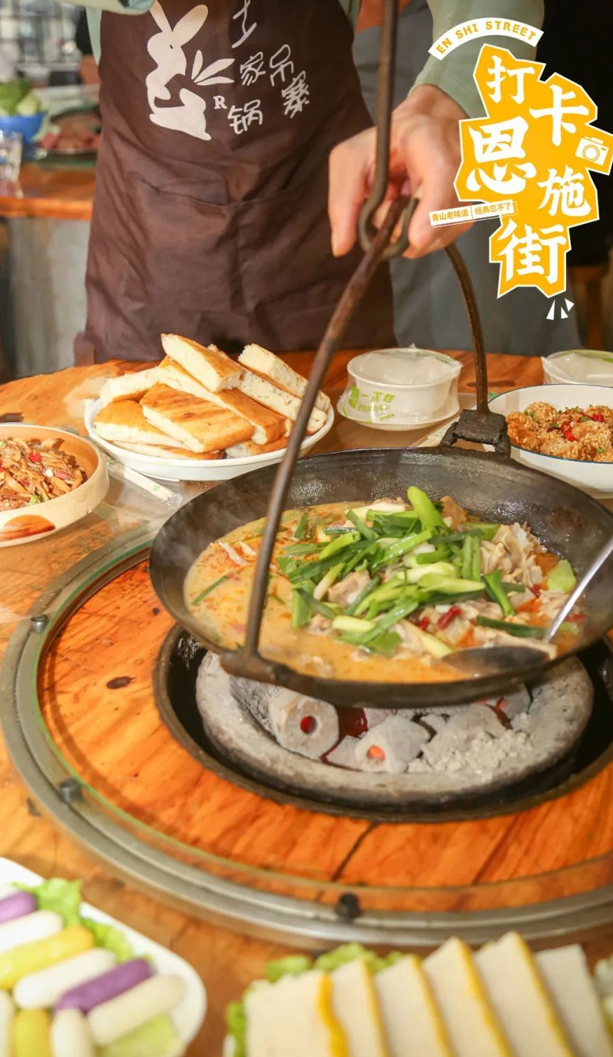 在美食扎堆的恩施街,向来不缺乏热闹升腾的舌尖故事,除了花样频出的新式餐饮,也有靠着口碑积淀,声名在外的老字号,位于恩施街与工业二路交汇处的『土家吊锅寨』就是其中一家。