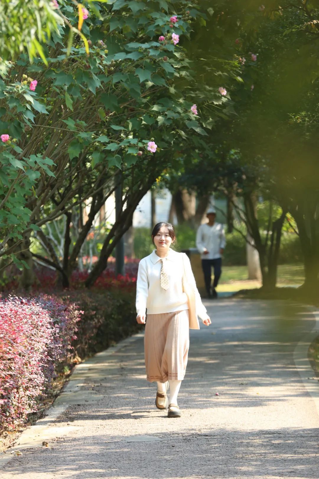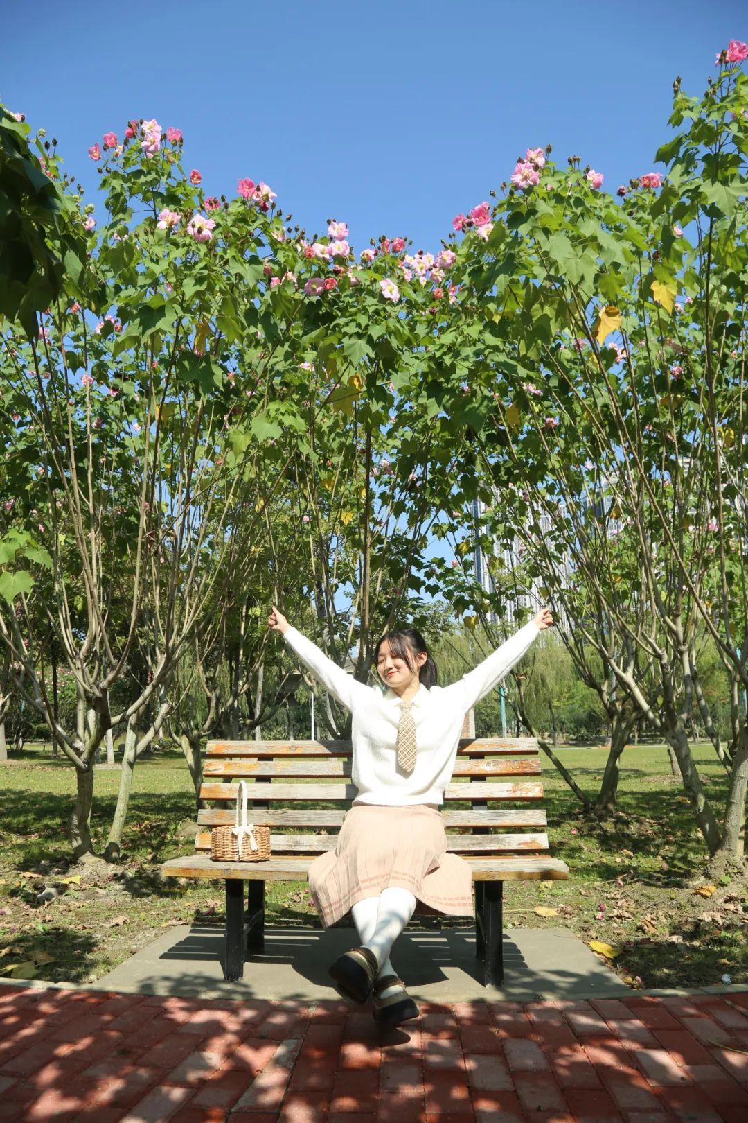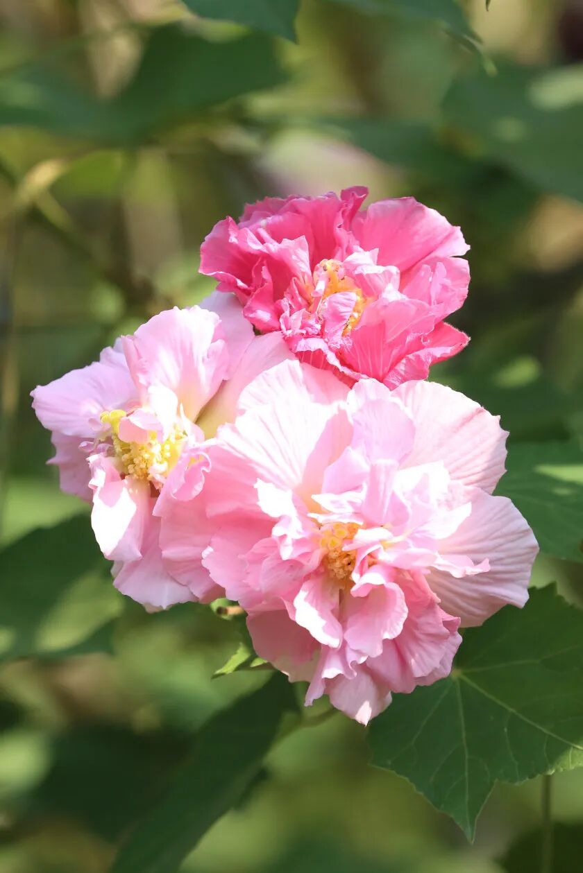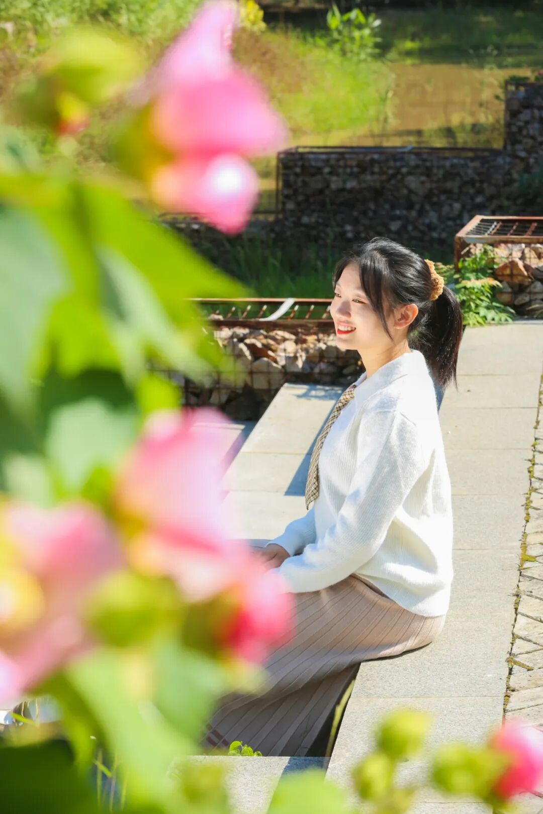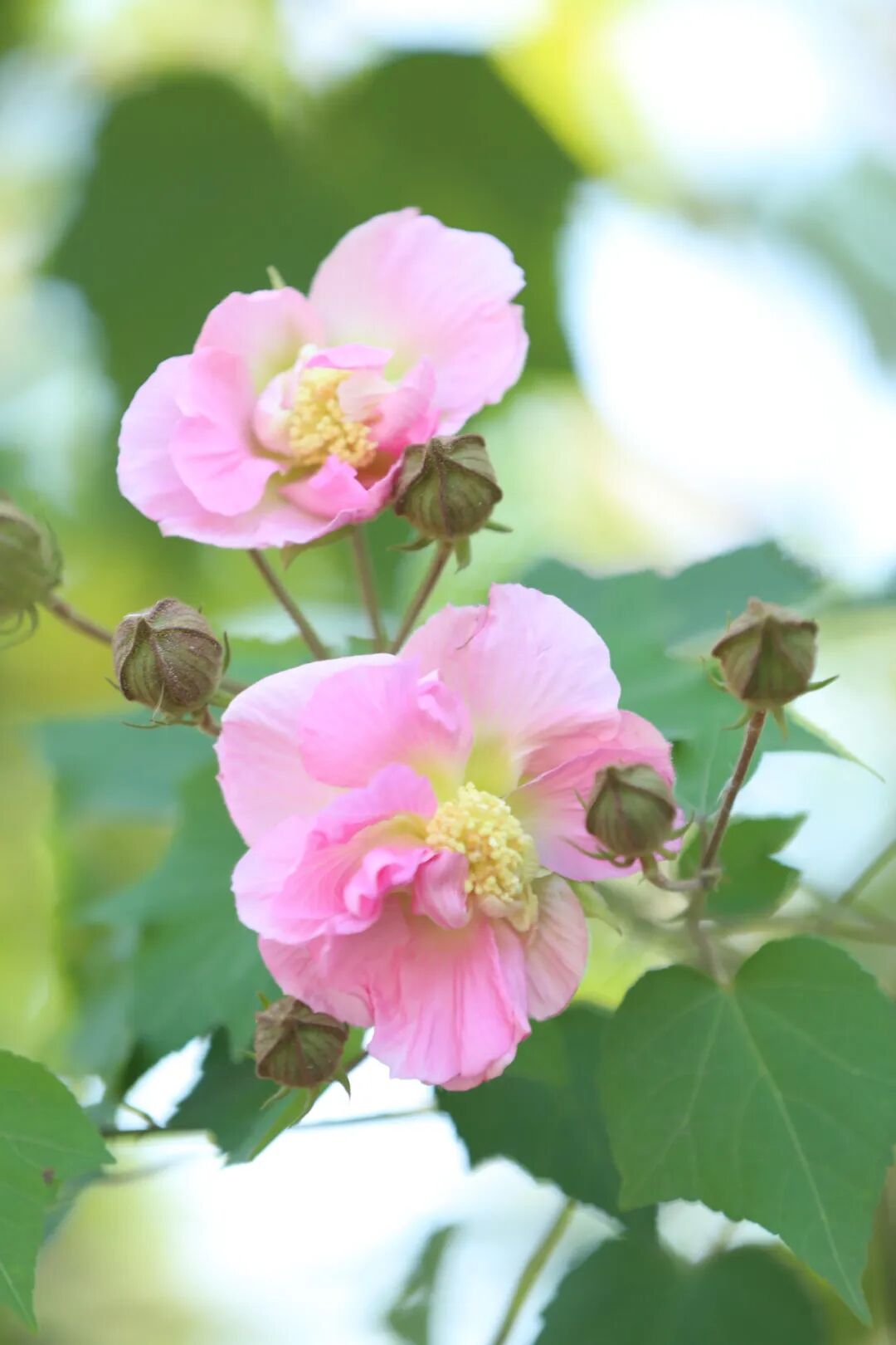 盛开的木芙蓉下,她们摆出最美的pose,言笑晏晏,比木芙蓉的美还具有感染力。