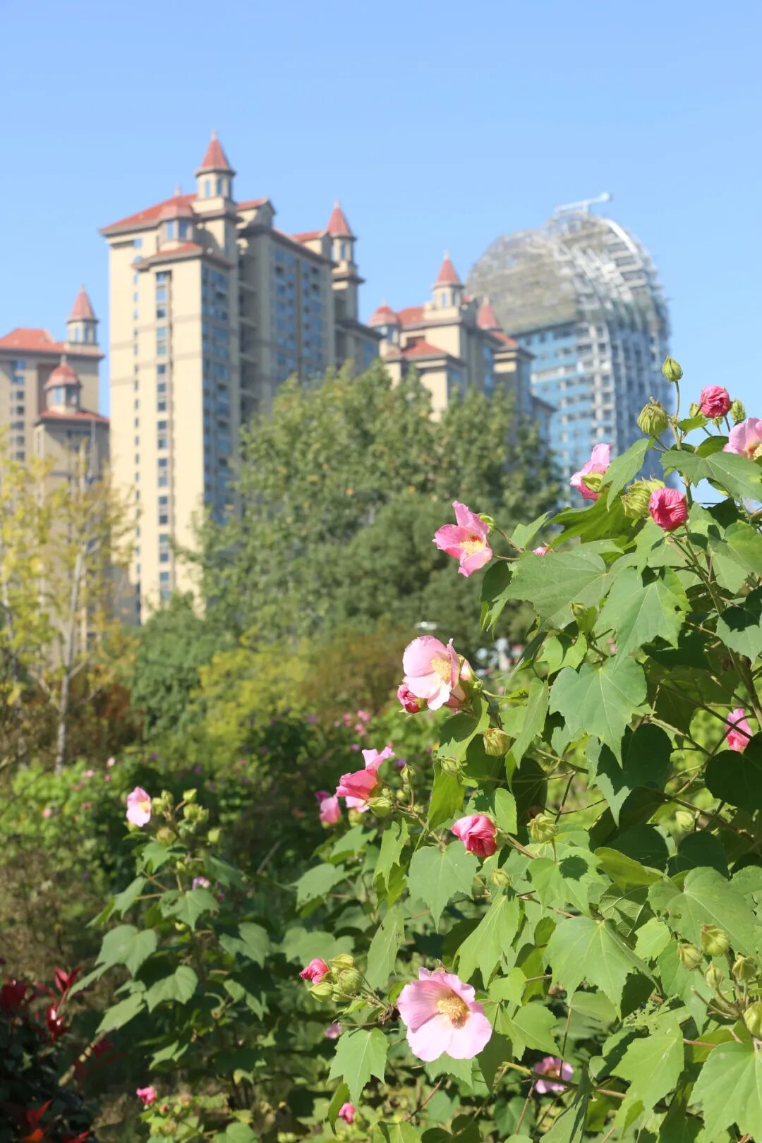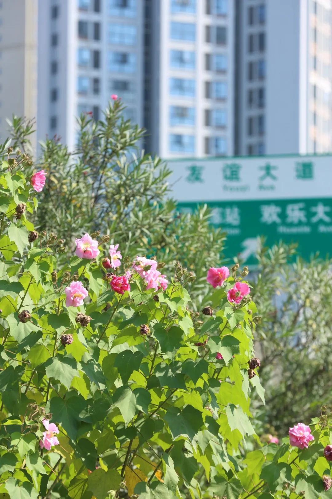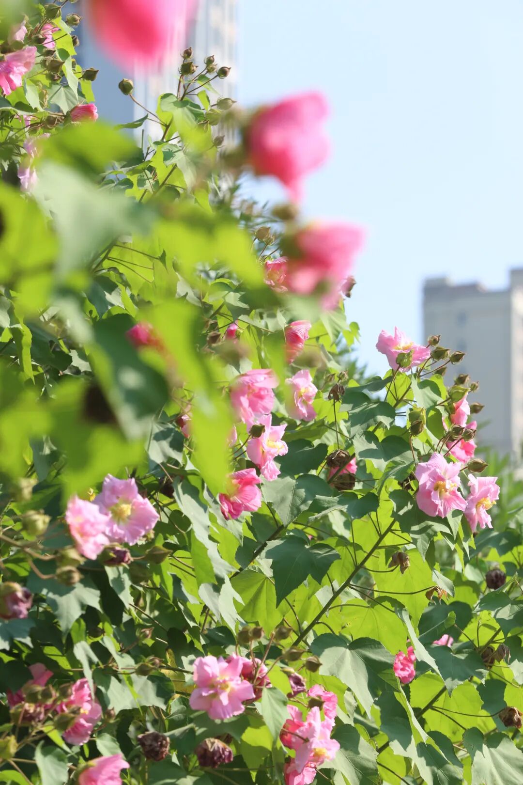 南干渠游园、白玉公园和青山公园里,众多木芙蓉已经盛开,成为青山秋天的低调顶流花。