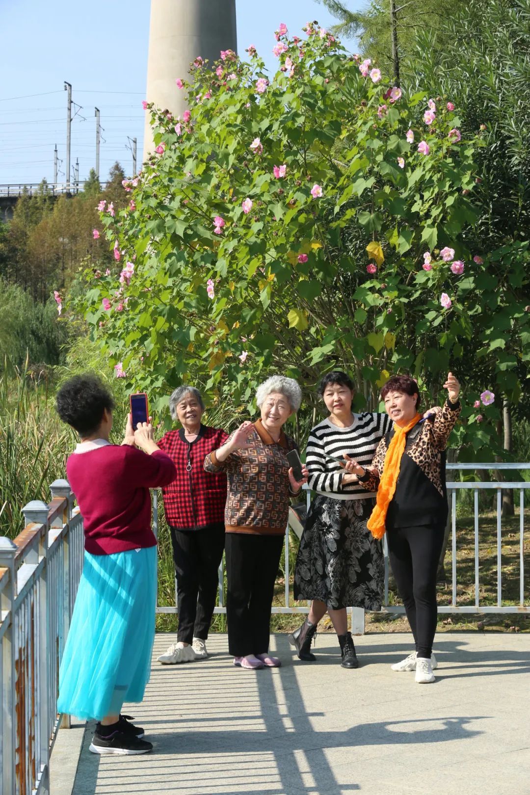 “这是木芙蓉花,小时候房前屋后都种着它。”家住汉口的徐奶奶专门回到青山,邀约一群姐妹淘,来戴家湖公园找寻儿时记忆里的美景。