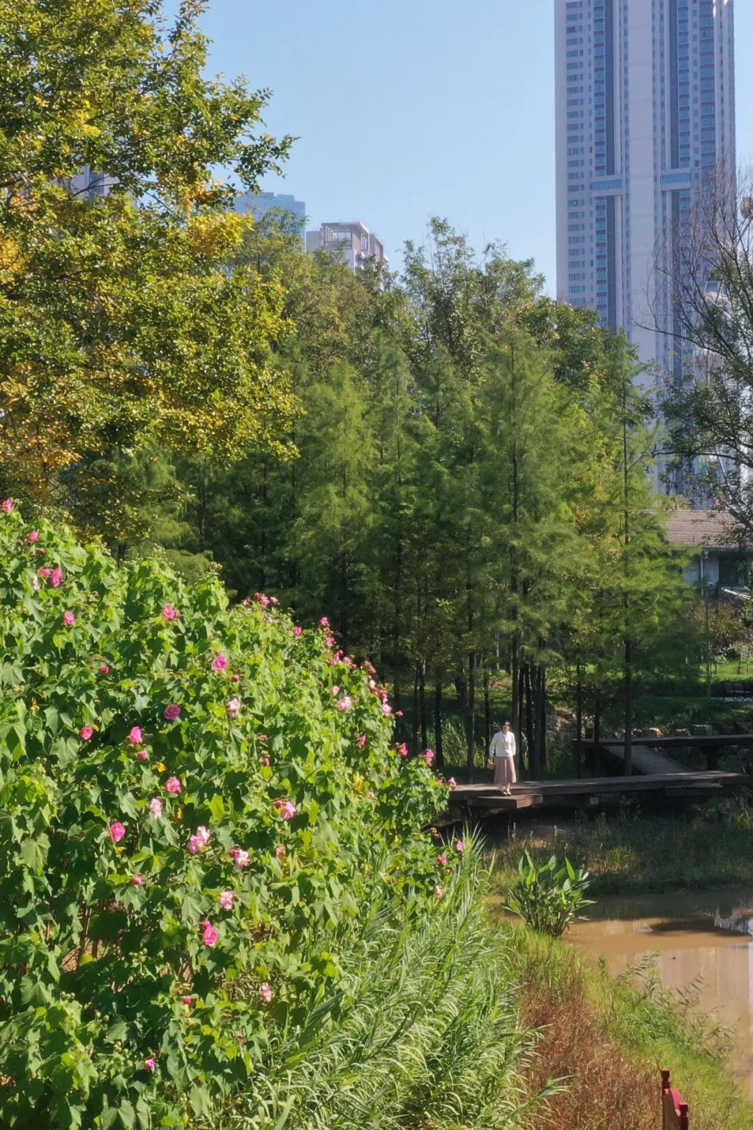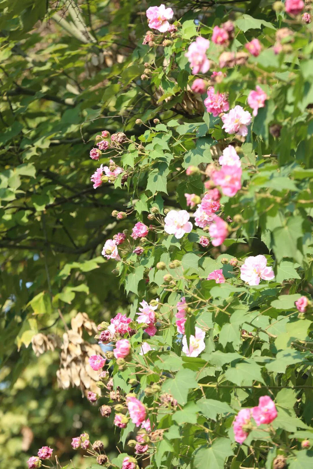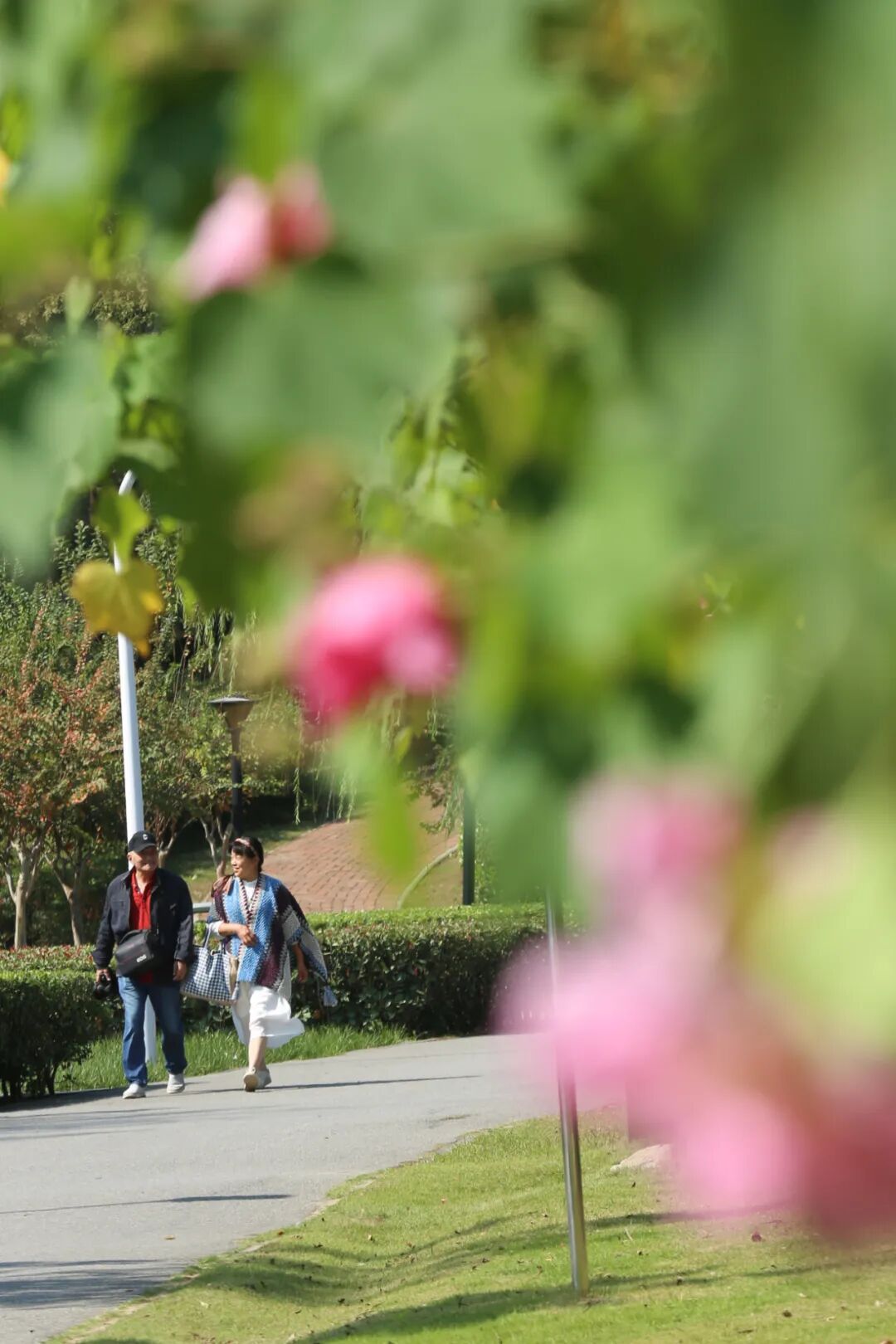 享受现在的舒爽天气,悠哉悠哉逛园子,耳边还能听到悠扬的萨克斯乐声,步行到月季园,就能看到风头正盛的木芙蓉,瞬间拉满这份粉色的秋日松弛感。