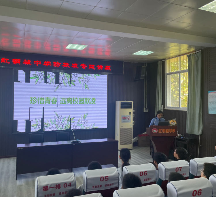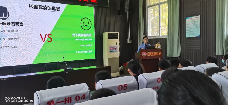 讲座围绕什么是校园欺凌、远离校园欺凌、应对校园欺凌等环节展开。