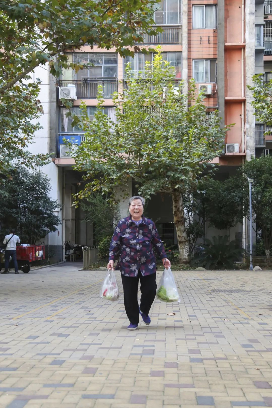 “住在这方便得很,离菜场近,买的菜都特别新鲜。”杨素珍婆婆一早买完菜,就会在小区里兜兜圈,跟邻居们唠唠嗑。