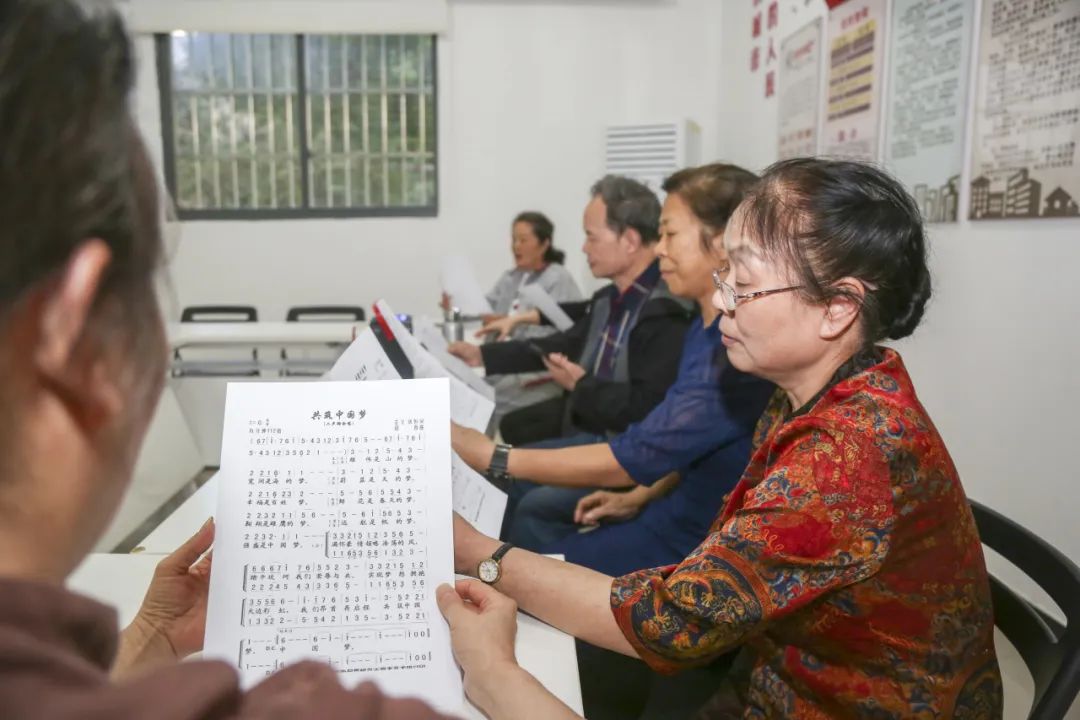 “我和我的祖国,一刻都不能分隔……”在青扬社区的社区活动中心里传来阵阵歌声,社区合唱团正在排练。为丰富老年人晚年生活,社区组建合唱团、舞蹈队等团队,举办“你画我猜”“老年知识竞赛”等多种益智类老年活动。