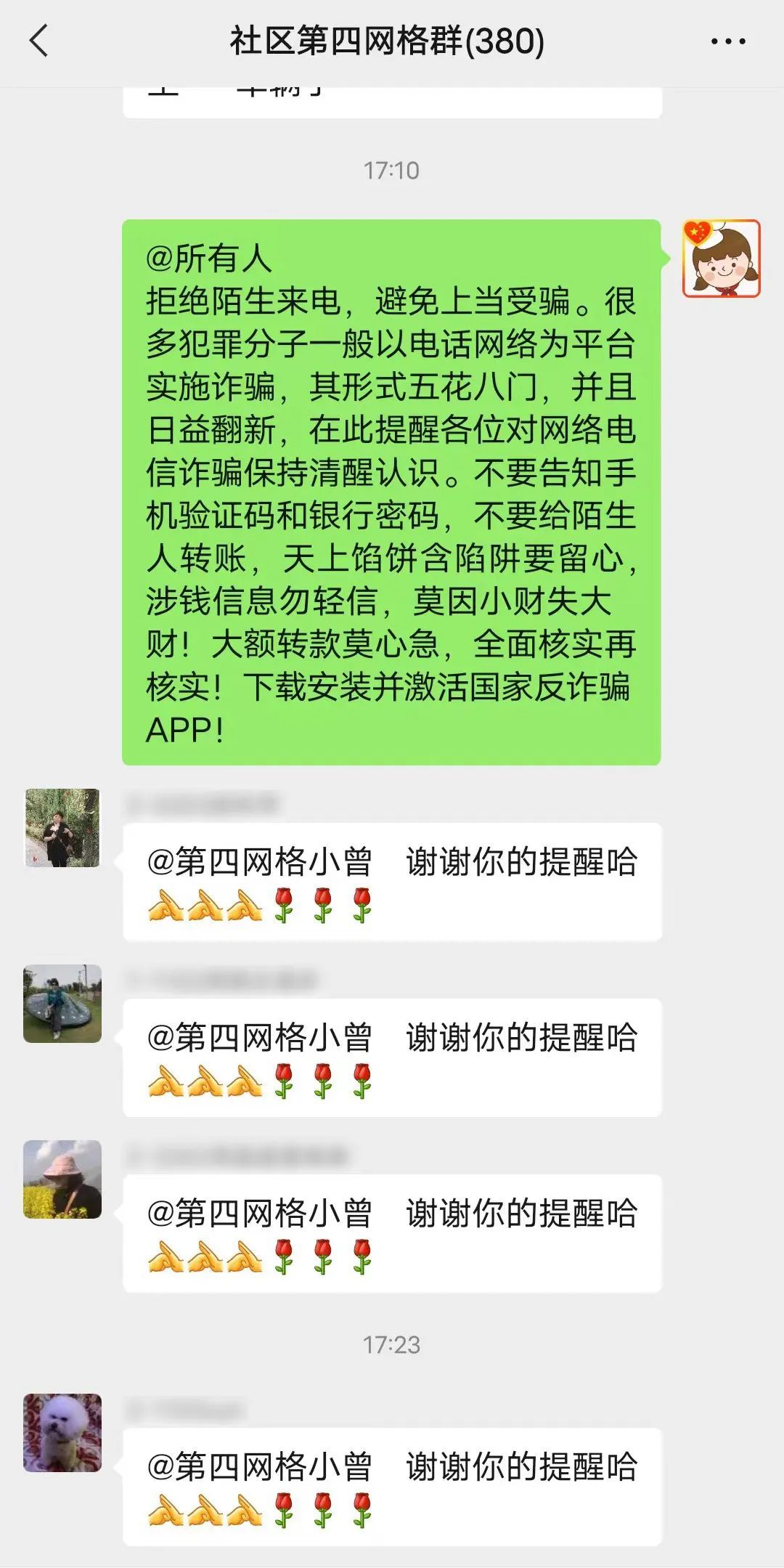 青扬社区网格员通过线上线下相结合的形式向居民进行知识宣传,社区利用网格微信群、科普宣传屏、志愿者定期上门,向辖区老年人发放垃圾分类、消防安全等知识宣传,让他们快捷地了解和掌握身边的知识,提升老年人的生活常识。