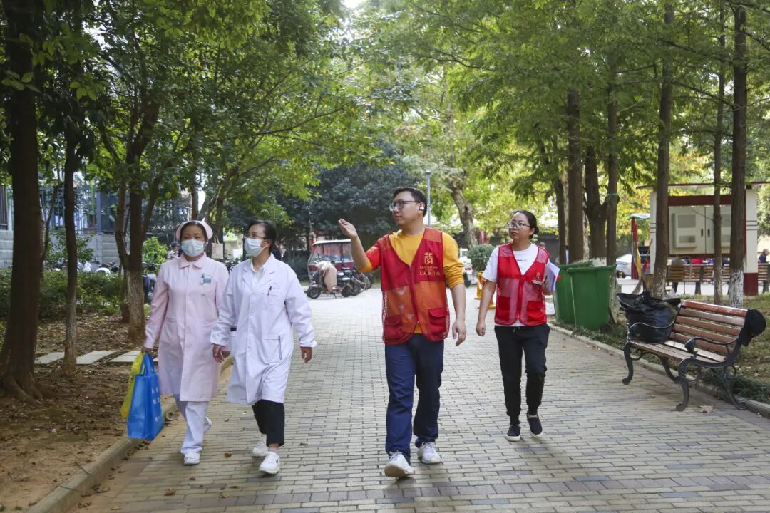 “最近有没有感觉到身体不舒服呀,之前开的药有没有按时吃?”红钢城街社区卫生服务中心的医护人员为谢志刚爷爷进行义诊服务。谢爷爷的下肢不便行走,医护人员定期上门为他进行身体检查,并给出医疗建议。青扬社区每月开展科普宣传、发放疾病预防手册、开展“医护知识”“心理调节”“疫情自我防护”等健康知识教育讲座,通过宣传教育倡导健康文明生活方式,增强老年人的健康意识。