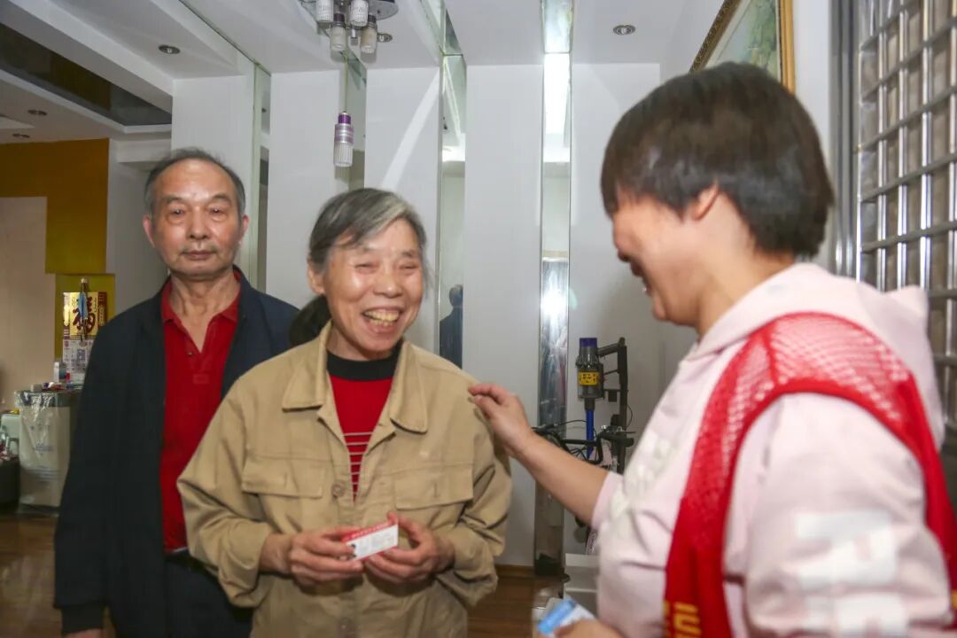 “这是最新的老年卡,您收好。”网格员柳璇为西区的钱又娣奶奶送上新办的老年卡。钱奶奶感谢道:“真是谢谢你啦,这样我就不用在跑一趟了。”青扬社区的网格员们对孤寡、独居老人坚持每日必访,帮助老人购买药品、充值煤气、更换下水软管、购买充电转换器,为老年人解决实际困难。