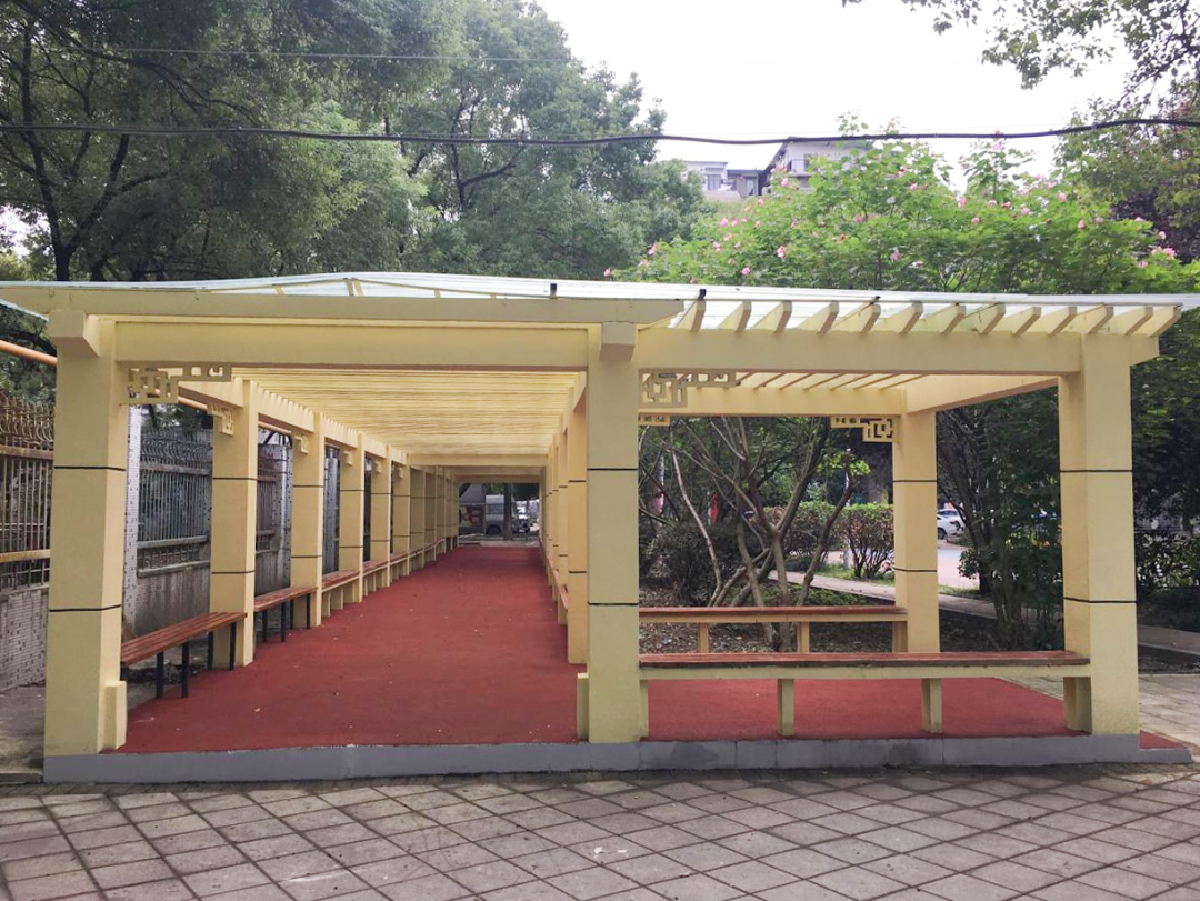 原来,社区对位于中心花园的露天长廊进行了修缮,在原本凹凸不平的地面铺上了红地毯,将墙皮脱落的水泥柱重新粉刷,给长凳重新刷漆,让长廊摇身一变成为社情民意集中地,也成为121社区首个居民“议事廊”,大家纷纷夸赞这是“民心工程”。