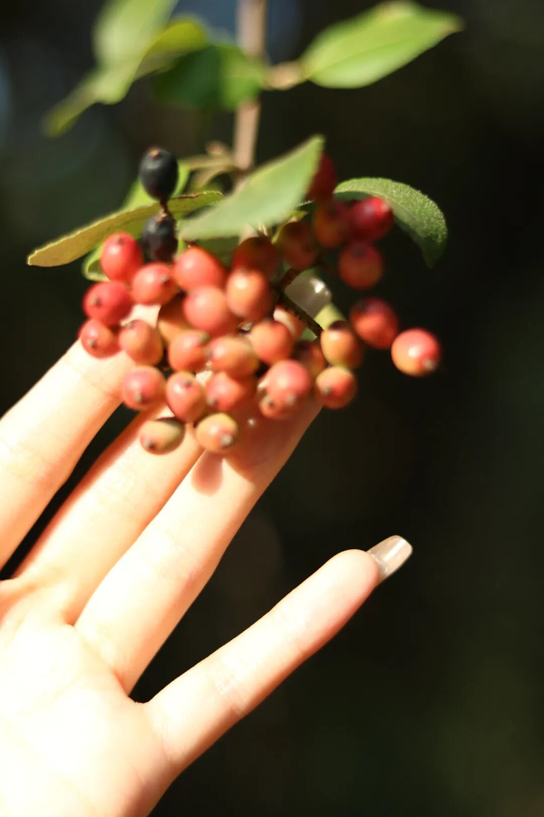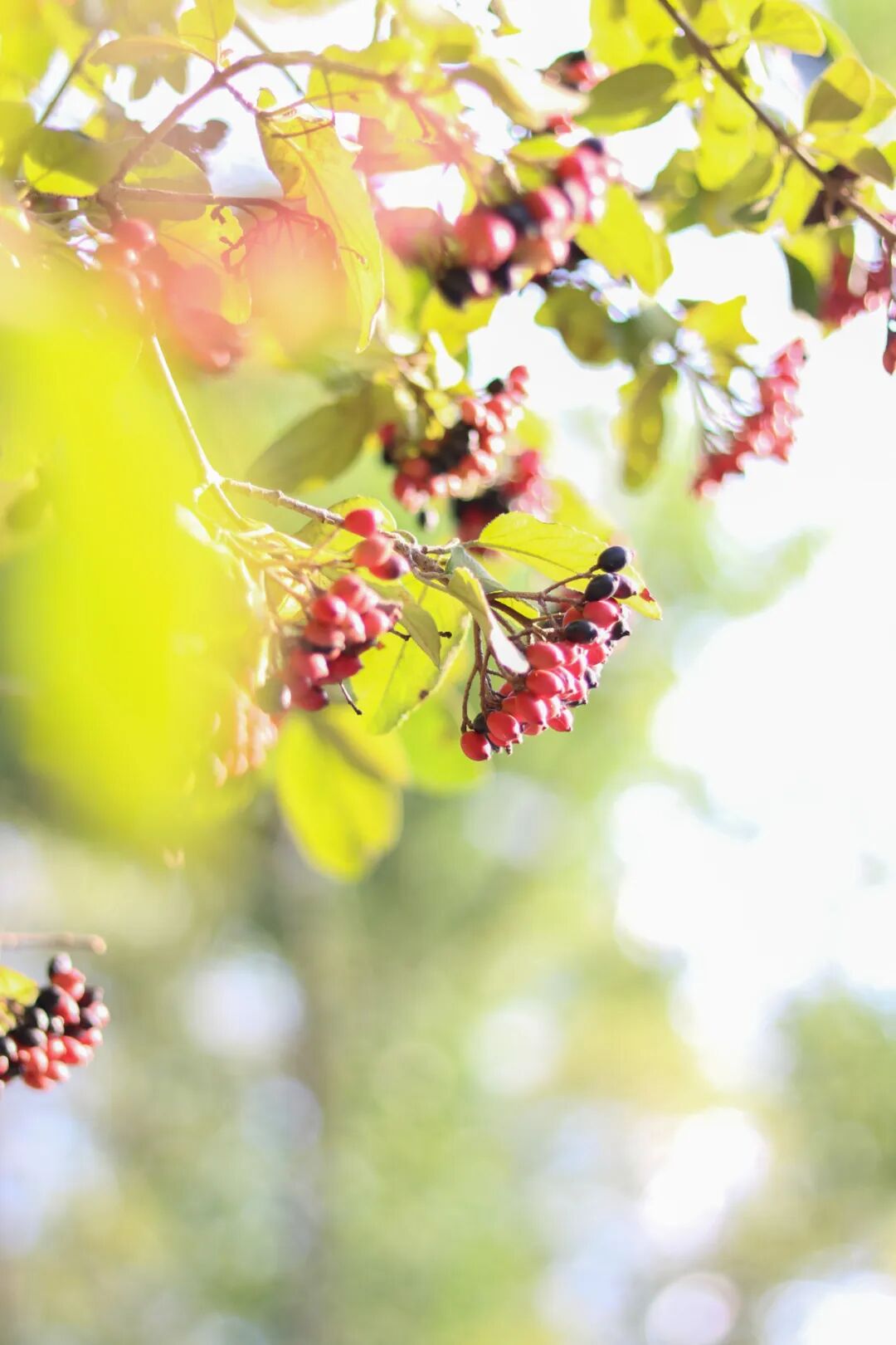 经过雨水的洗涤,青山秋色格外动人,偶然抬头,视线不由自主地被红橙黄绿的果子吸引了。