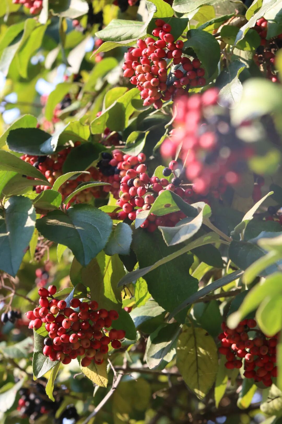 琼花果挂在一人多高的枝头,比起秋天其他直冲云霄的树木,多了几分平易近人的亲切感。累累圆果,红艳夺目,路过便感觉秋天也变得热闹起来。
