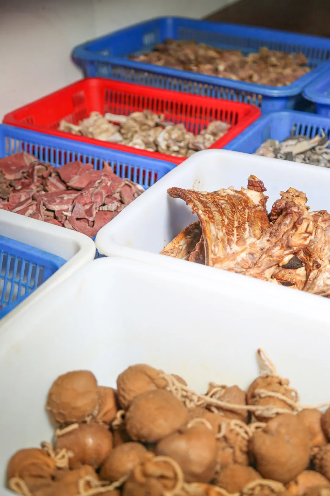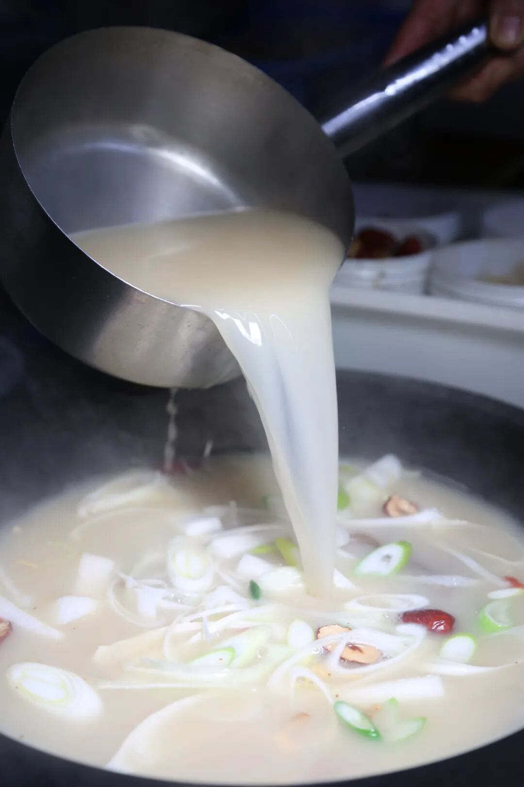而这一切的鲜美,还要从前一天的『继哥羊肉馆』去腥保鲜的“繁杂”工序说起。新鲜干净的羊肉运到店里,第一个“见面礼”就是长达10小时左右的冷水“洗礼”。等到血水清净,就到了羊肉与秘制料包的共浴时间,小火慢炖1-2小时,不断撇浮沫,方能得到一锅汤色清澈浓郁的清汤。