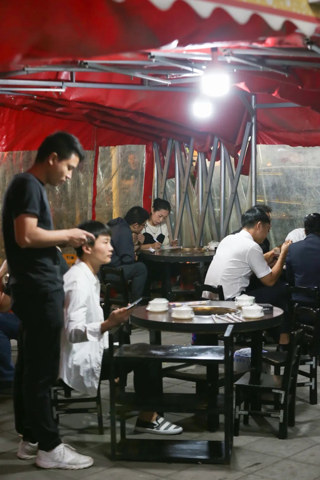 『继哥羊肉馆』店内围炉而坐的食客们,一边烤着火,一边惬意地享受美味,屋外凛冽的寒风与桌前缓缓上升的热气形成鲜明对比。