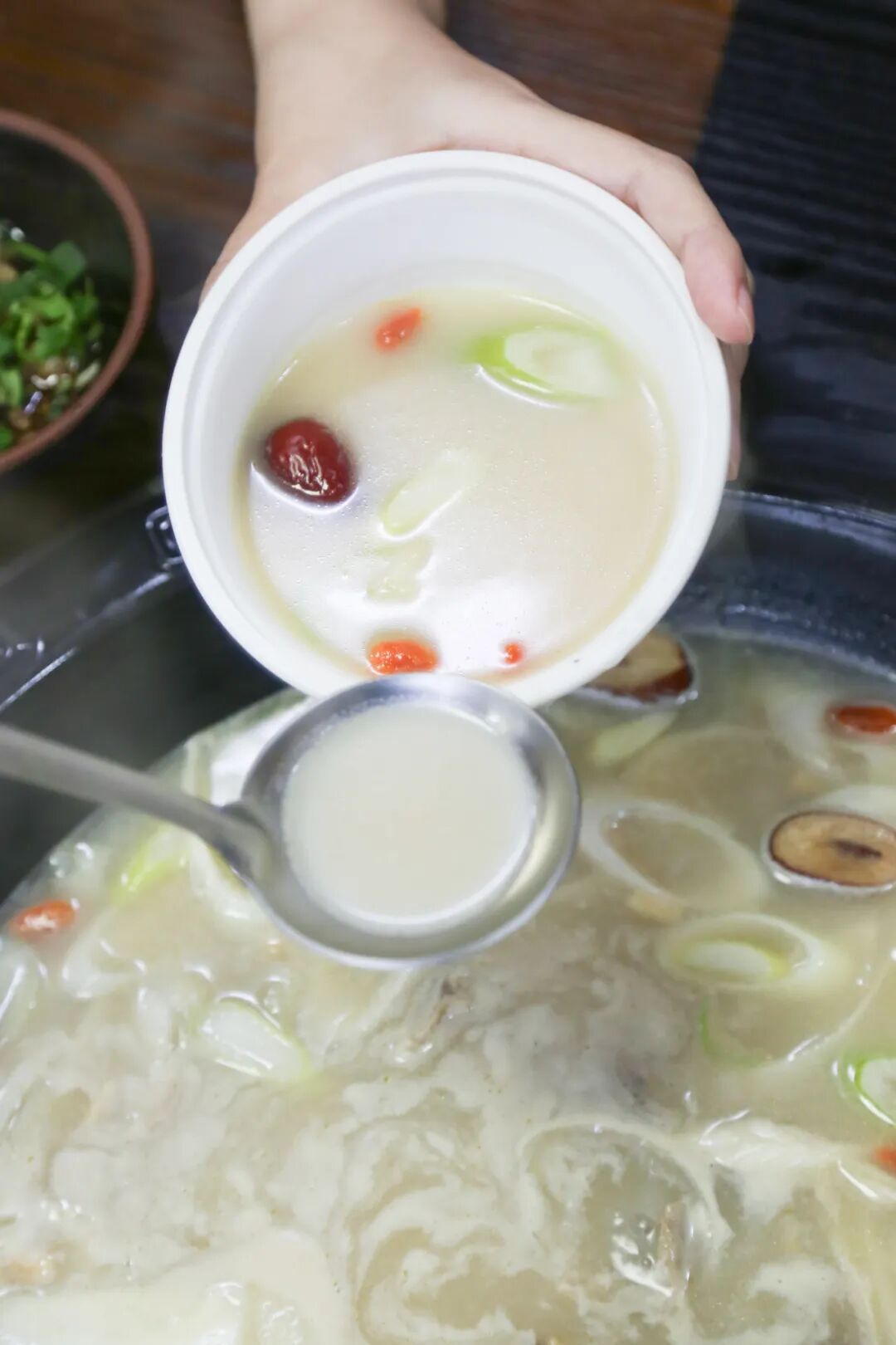 拿起汤勺轻轻搅动,沉在锅底的狠货就浮出了水面,分量十足的带皮羊肉不断翻滚,散发出阵阵香气,Q弹劲道的羊皮保留了原有的胶原蛋白,与鲜嫩软烂的羊肉形成绝佳搭配。