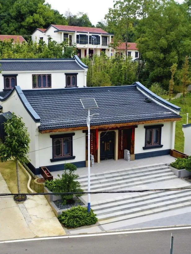 山边湾村居外观上以白墙红瓦为主色调,门窗采用的是中式仿古铝合金材料,与村居整体风格协调统一。