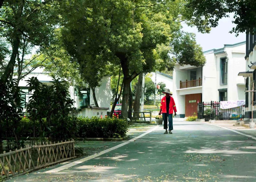沿村道缓缓前行,两旁樟木参天蔽日,绿树成荫。房前屋后种有修竹、石楠,月季、石榴等景观植物,形成绿化的立体层次感。一二声鸡鸣、三四声犬吠,映衬出村湾分外的静谧。