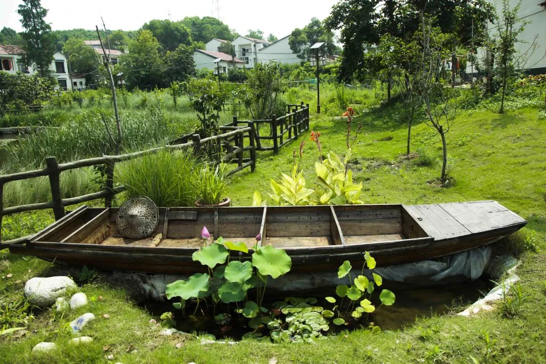 山边湾的山是徐家后山,面向严西湖,以林地、农业用地为主,村湾周边植被繁茂、水塘零星分布,自然禀赋较好,以前主种水稻,经济作物则以太空莲、茶叶的种植为主,“青山三宝”之一的香莲就是产自这里。