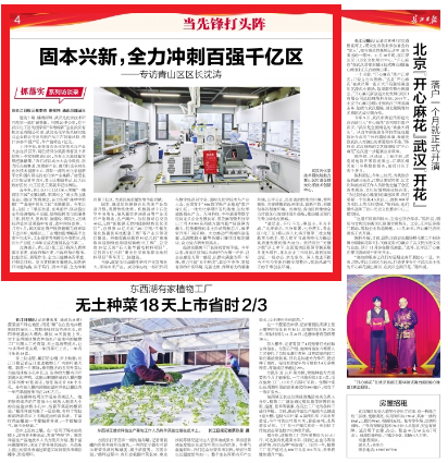 当先锋打头阵。11月13日,长江日报《抓落实系列访谈录》栏目专访青山区区长沈涛,从深入实施“一轴两区三城”发展战略,牢固树立“绿水青山就是金山银山”发展理念,奋力实现“森林中的钢厂”“湿地中的化工区”发展愿景,讲述青山加快新旧动能转换,实干笃行,固本兴新,全力冲刺百强千亿区。