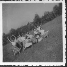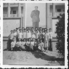 △1969年,武钢三中文艺宣传队女队员排练结束后,在学校操场合影