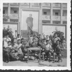 △1969年,武钢三中文艺宣传队男队员排练结束后,在学校大门合影