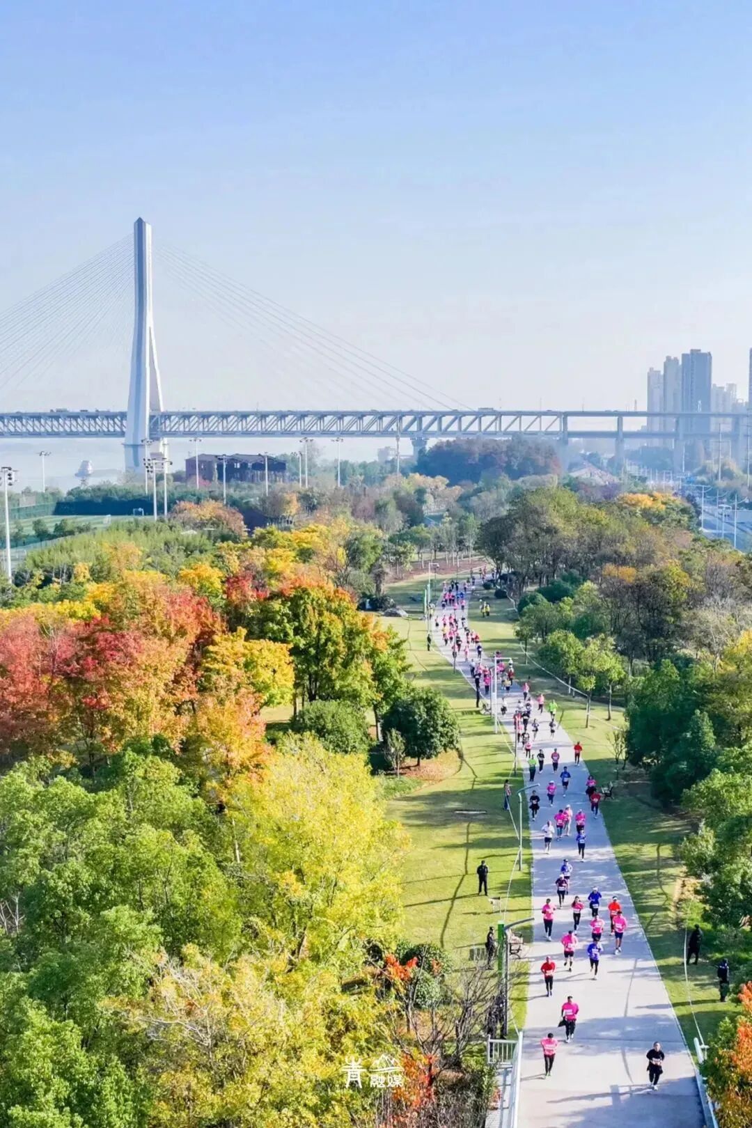 彩林奔跑在青山江滩