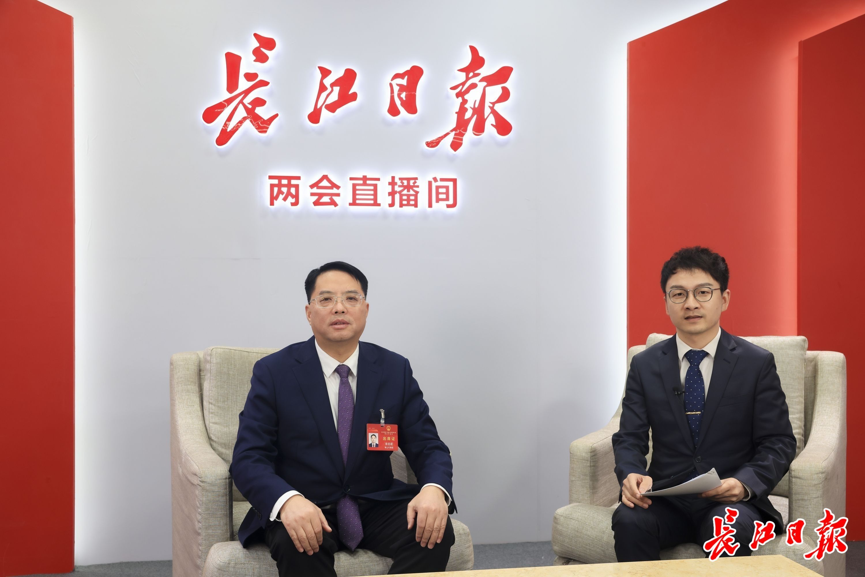 青山区委书记余志成(左)做客长江日报直播间。长江日报记者胡冬冬 摄
