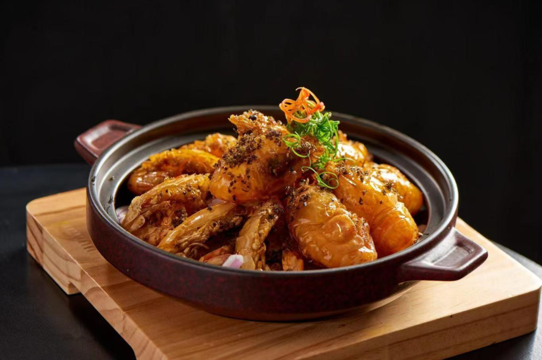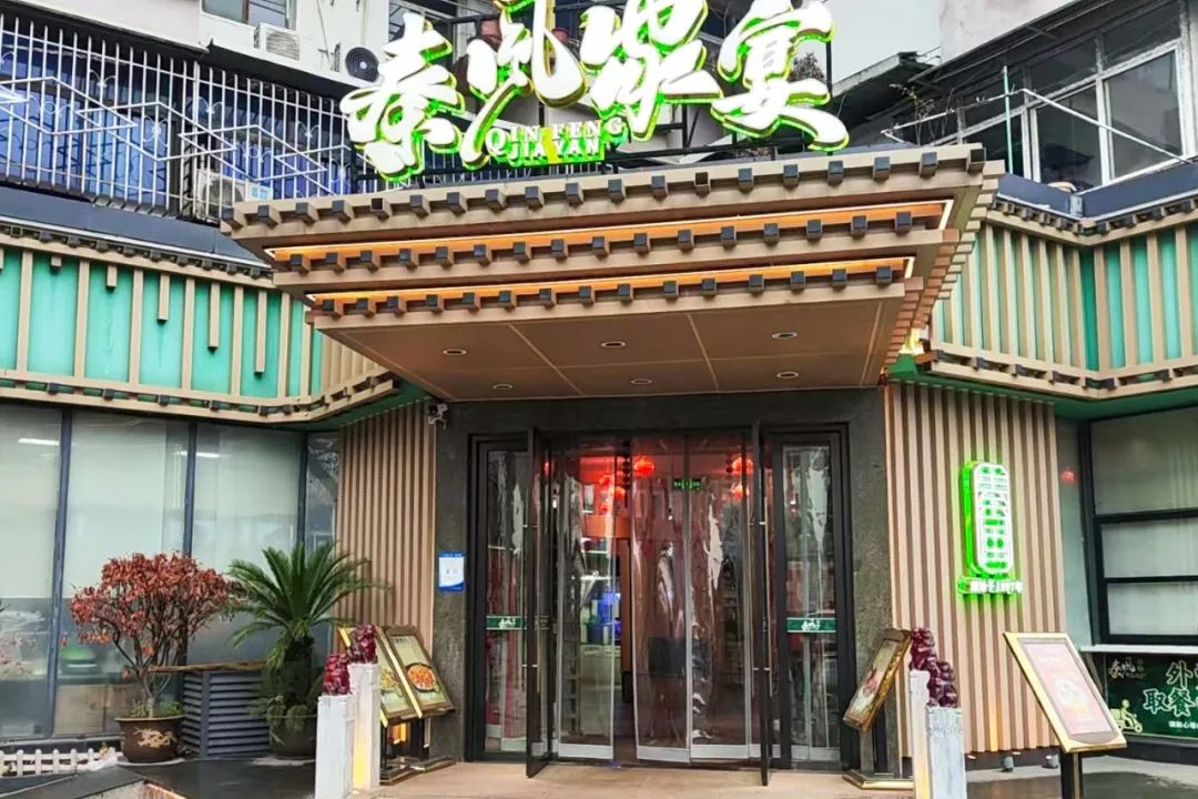 年年有余,家家团圆,步步高升,秦风家宴的黄陂三鲜由鱼圆,肉圆,鱼糕组成,是武汉郊县黄陂民间的传统佳肴娃娃菜打底,虫草花点缀,有补气血,清理肠胃,美容养颜之功效;石锅梅干菜罗氏虾选用个大饱满的十头罗氏虾,炸制壳酥肉嫩,经秘制柠檬酱汁炒制,撒入炸香的梅干菜,口味咸鲜回甜、虾肉紧实饱满;腊鸡炖莴苣精选湖北特产荆门市沙洋县十里铺镇放养的风干鸡,莴苣的清香搭配风干鸡的腊香,让人回味无穷汤汁拌饭能吃三大碗;青麻椒蒸大白刁精选 7-8 斤重的丹江口大白刁,现熬鸡油一起蒸制,薪火相传,寻味秦风遗韵;溯源本臻,并蓄八方风味。