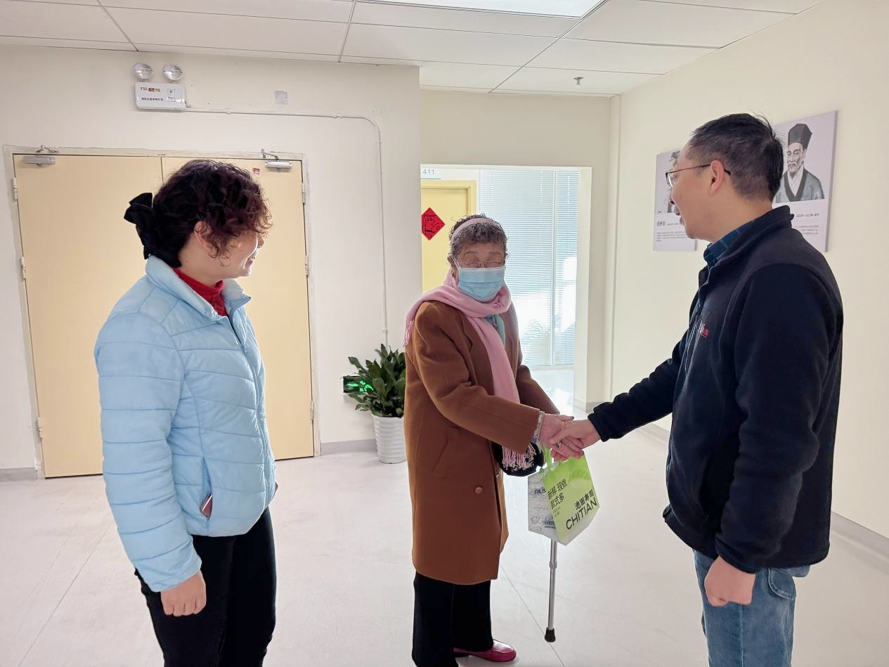 该中心院长蔡宏斌、副院长曾元彬还组织慰问小组,来到退休职工冯建桥的家中。冯奶奶见到慰问小组到来,眼中满是感动:“我的身体还好,感谢中心还记得我,这份关怀如同冬日暖阳,温暖了我的心。”慰问小组送上节日礼物的同时,传递了对她往昔贡献的深深敬意与感谢。