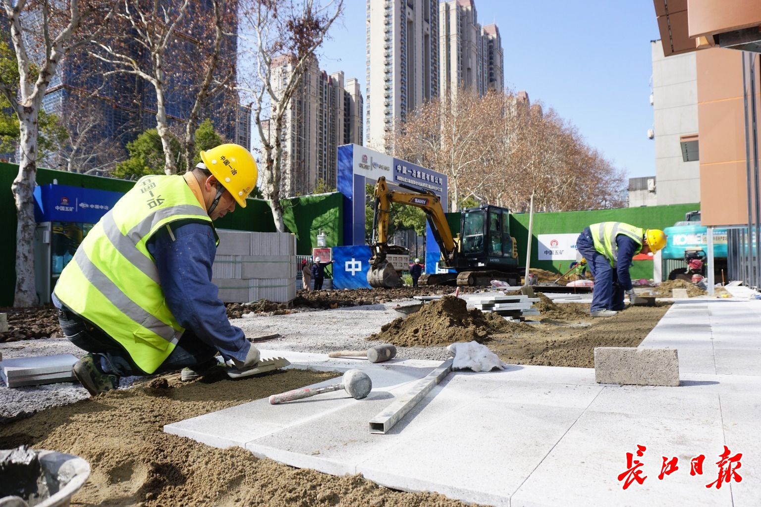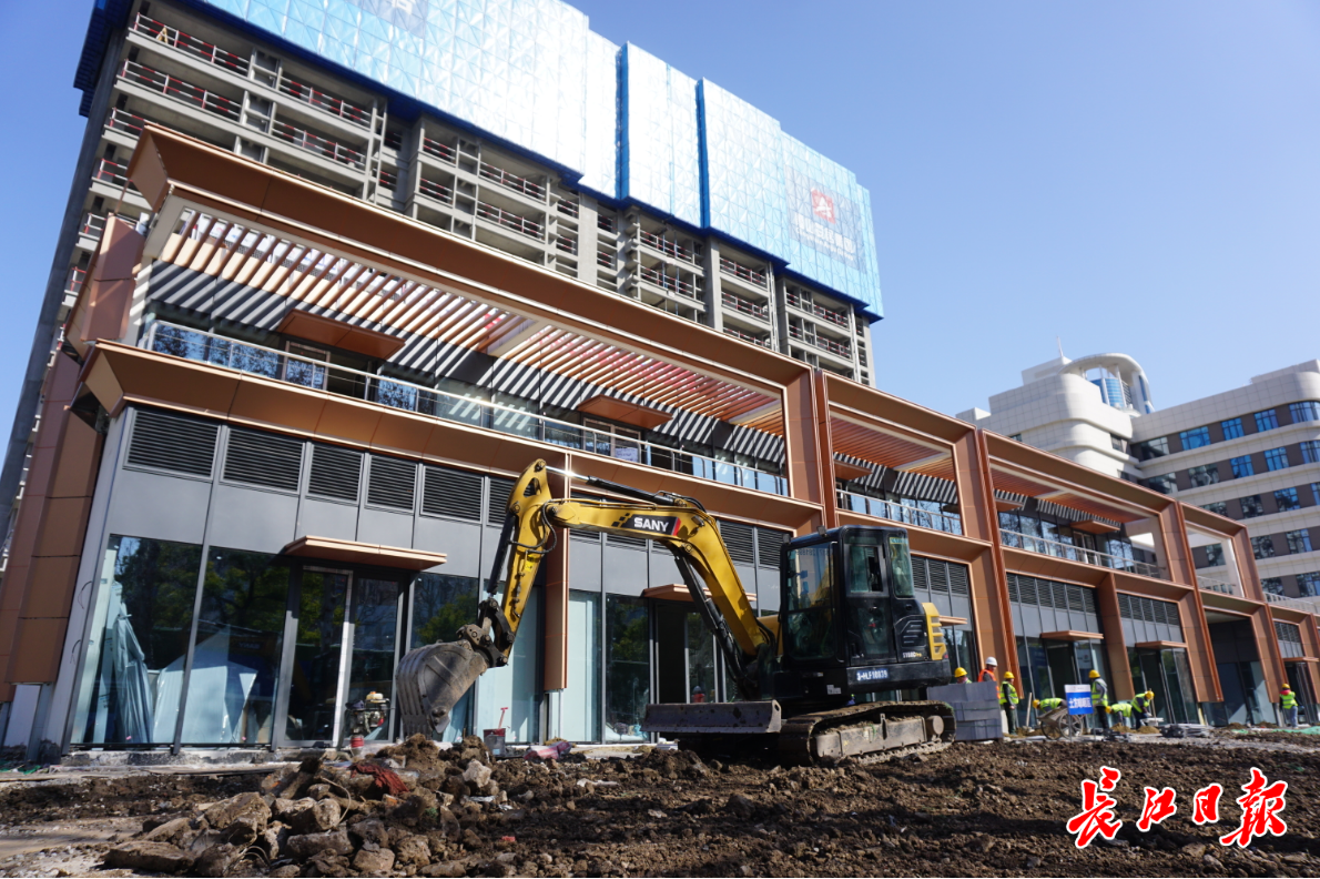 “今天地面绿化和人行道地砖开始施工,乔木、草皮、灯具送来之后,地面花园会在几天内成型。”项目设计施工总承包单位中国一冶集团有限公司项目总工黄垚介绍,“商业裙楼的屋顶花园、住宅楼17层的架空层会在项目收尾时设置绿化,形成地面、裙楼屋顶、架空层三层绿化。”