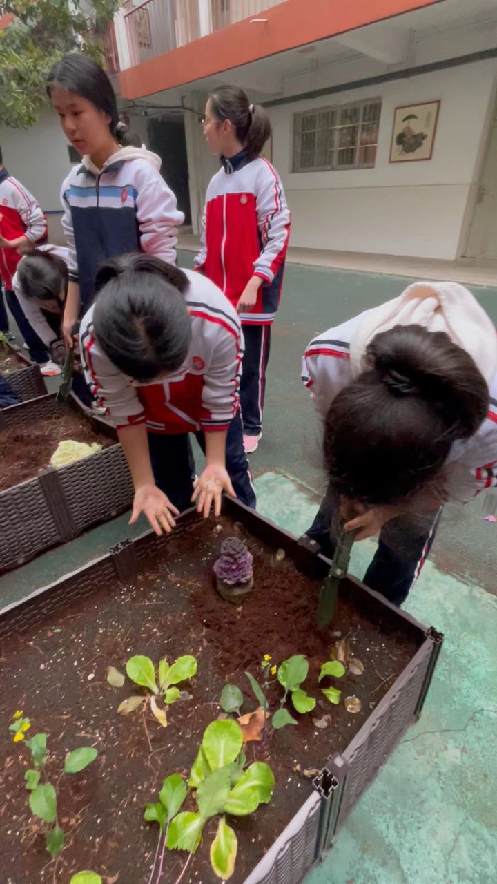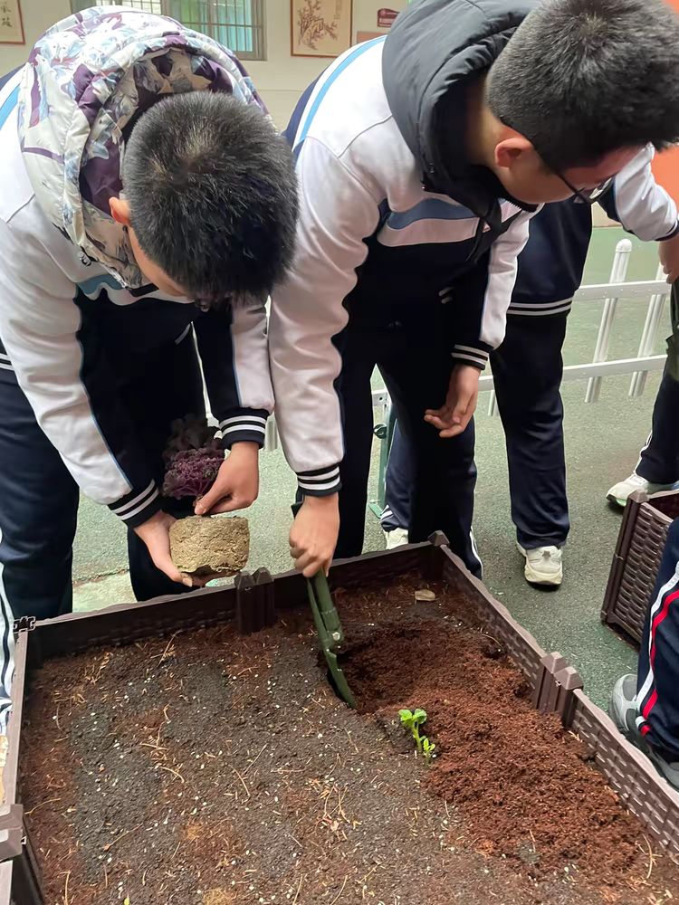 随着一声"开始种植","勤耕园"顿时热闹起来。学生两两协作,男生挥铲挖坑,女生扶苗培土,很快,菜畦里整齐挺立起株株幼苗。活动尾声,师生们共同感叹:“劳动教育不仅是技能的传授,更是生命教育的延伸。”本学期,各班将轮流负责"责任田"日常养护,收获的作物将用于食堂加工,让劳动教育形成完整育人闭环。