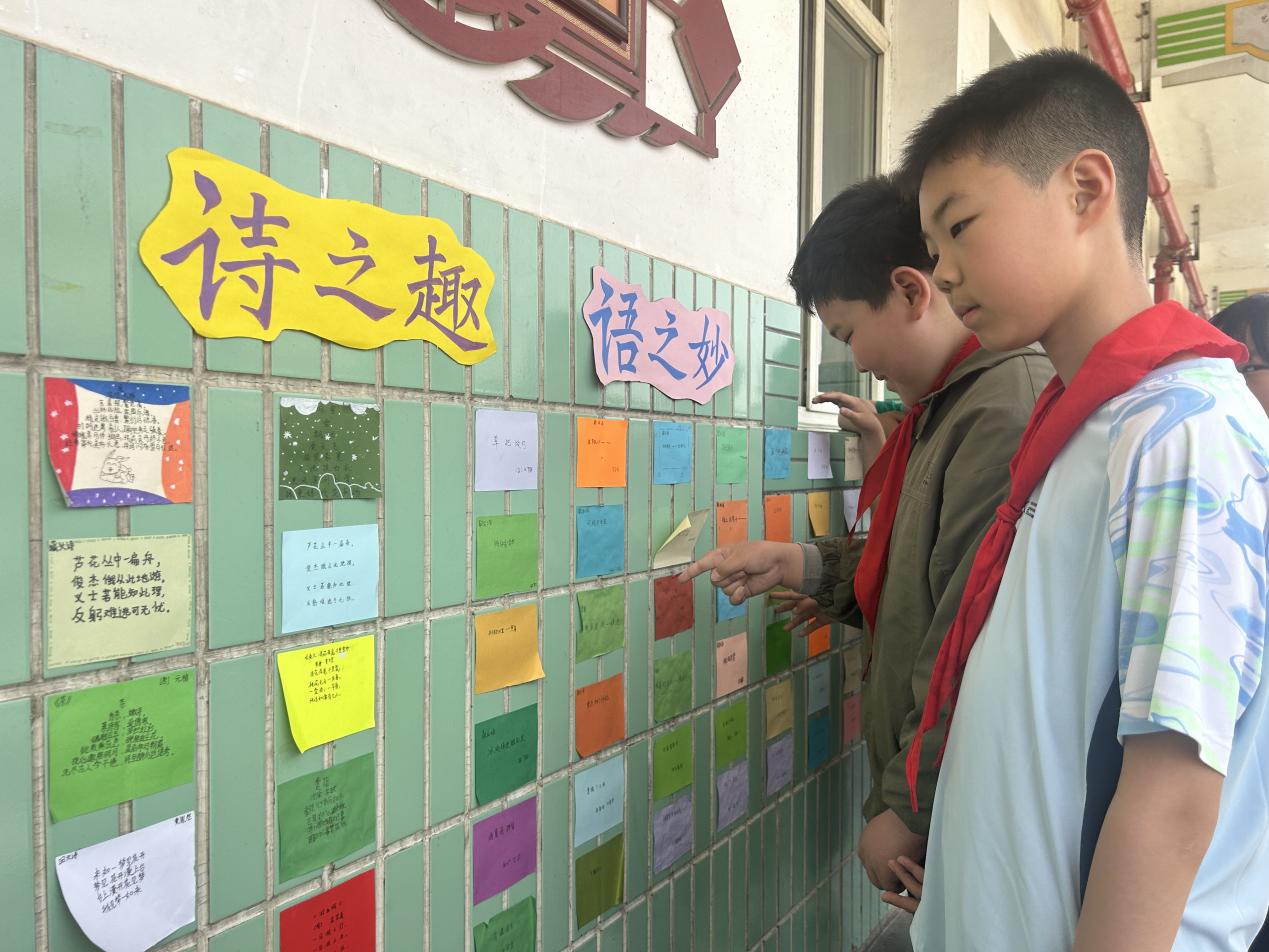 本次活动成果展示设置六大互动展区,亮点纷呈。在 “汉字演变我来猜” 板块,学生们通过猜甲骨文、篆书和印章,沉浸式体验汉字的演变魅力;“关于姓氏的研究报告” 板块中,学生围绕自己的姓氏展开调研,提出问题、分析问题、解决问题,形成了一份份内容详实的研究报告;“古典名著读书小报” 将古典名著与绘画艺术巧妙结合,让学生在阅读经典的同时,展现绘画才艺;“诗之趣 语之妙” 板块展示了特殊对联、尖塔诗等,尽显汉语言文字的精妙;“海棠学社” 讲述有趣的汉字故事,让学生在故事中感受汉字文化的博大精深;“福气满满” 则通过书法作品欣赏,领略汉字的艺术之美。