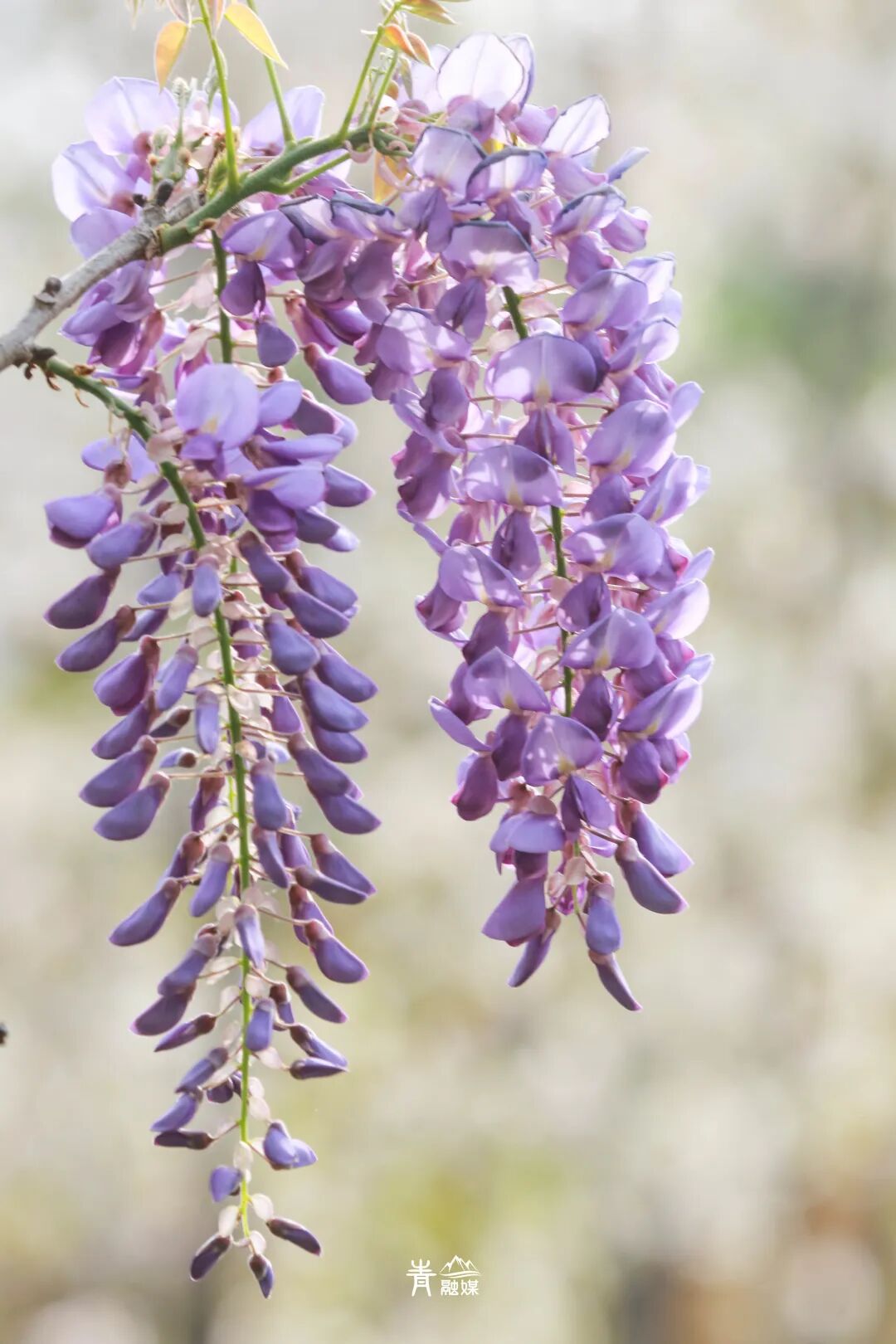 紫色朵朵缠绵温存,微风一吹,紫藤化身春日调香师,散播阵阵幽香,在枝头轻轻摇曳的紫藤又像浪漫诗人,用一串串花将对春光的眷恋编进藤蔓,垂落人间。