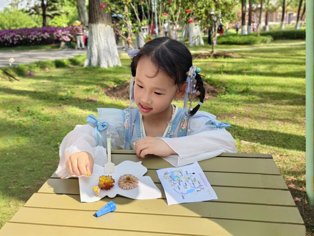 活动结束孩子们举着自己的作品在花林间走秀,小扇子摇动生风,沾着草汁的汉服、染着颜料的漆扇,连同此起彼伏的“我找到春天啦”的欢呼声,构成一副流动的春日画卷。