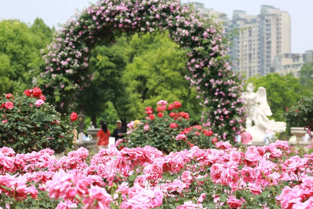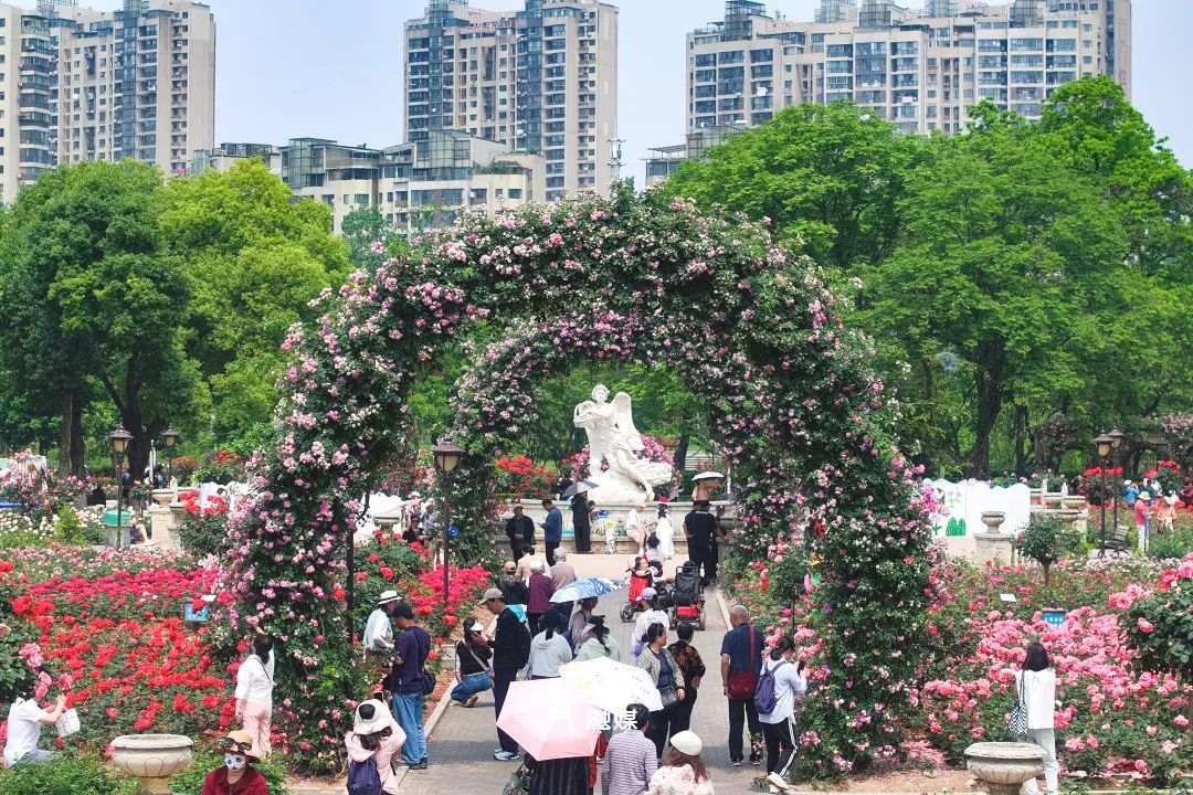 作为武汉著名的月季专类园,规模大、品种全、颜值高的和平公园月季园,每到4月末就会爆火,众多游人纷至沓来。