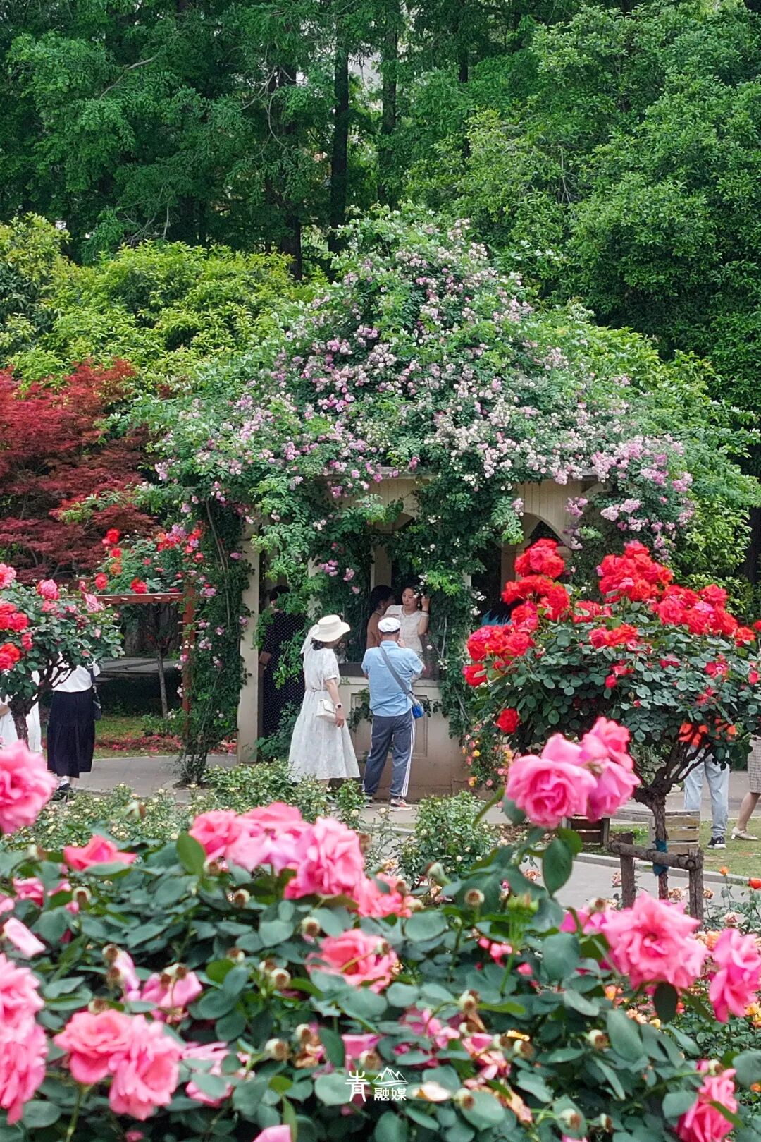 作为老网红之一的欧式蔷薇花亭,爬满着清丽蔷薇花簇,粉绿相间宛如油画,轻松get南法度假风。
