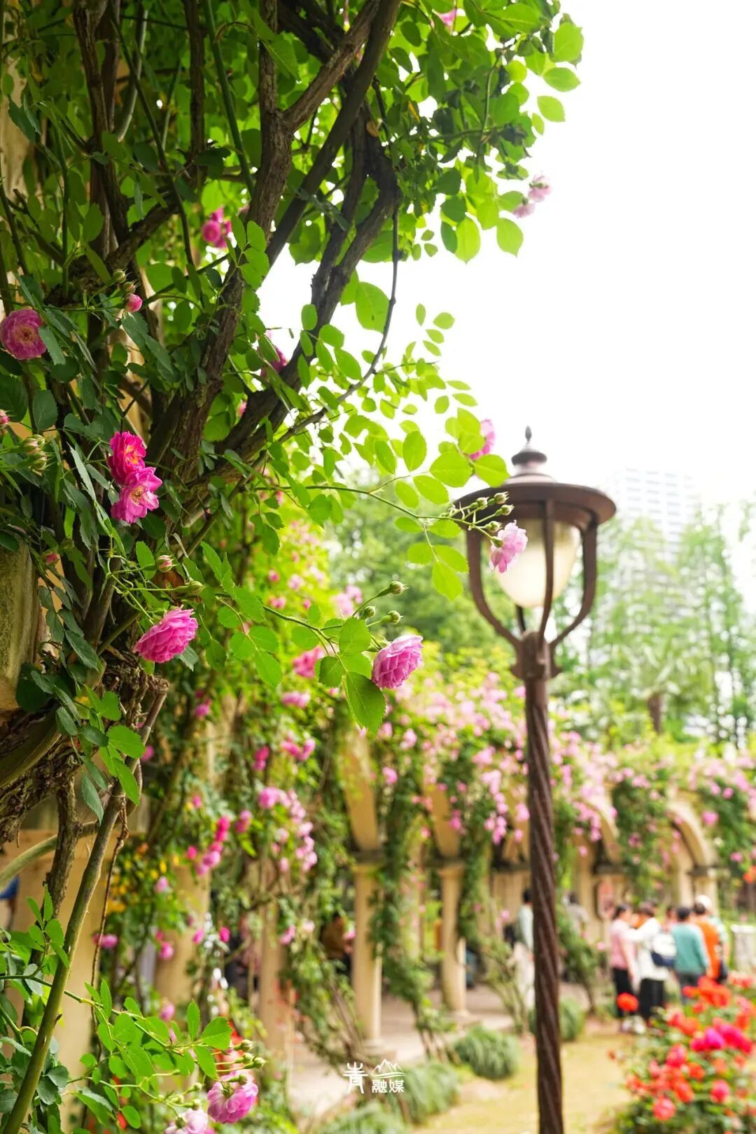 网红打卡点月季花廊也是相当出片。爆开的粉色蔷薇随风轻摇,浪漫值满分,穿行其中,仿佛步入童话世界。