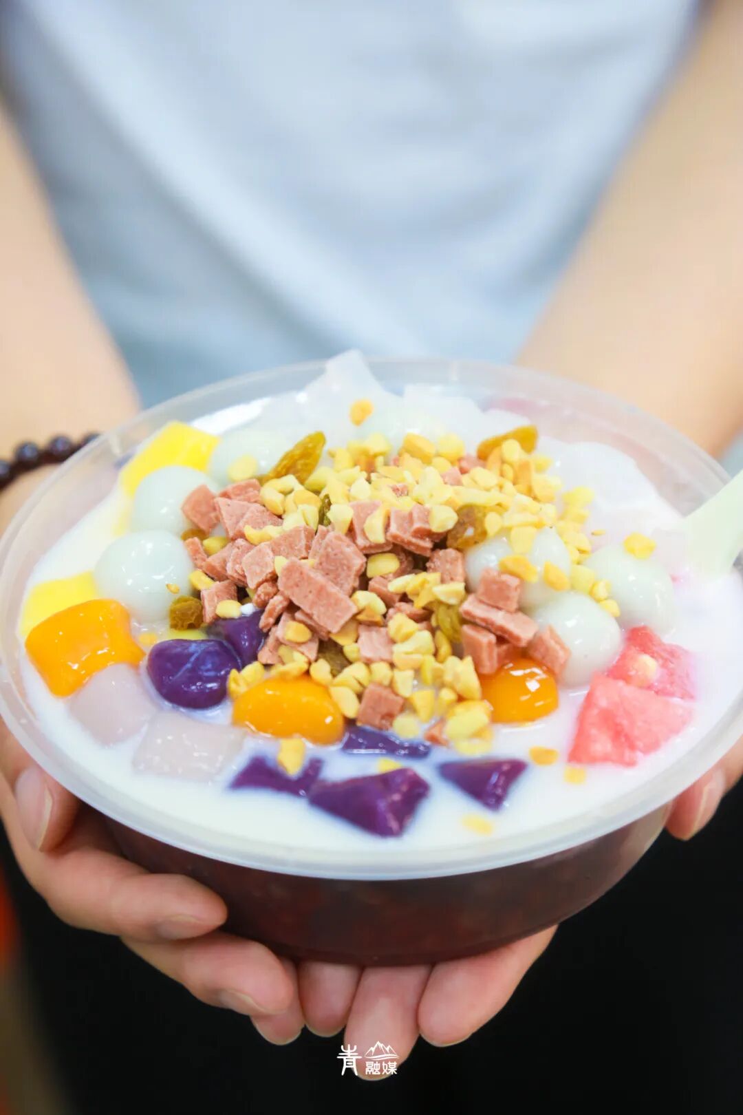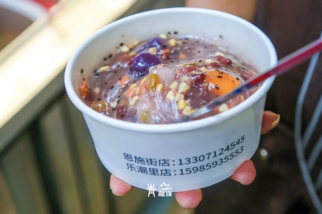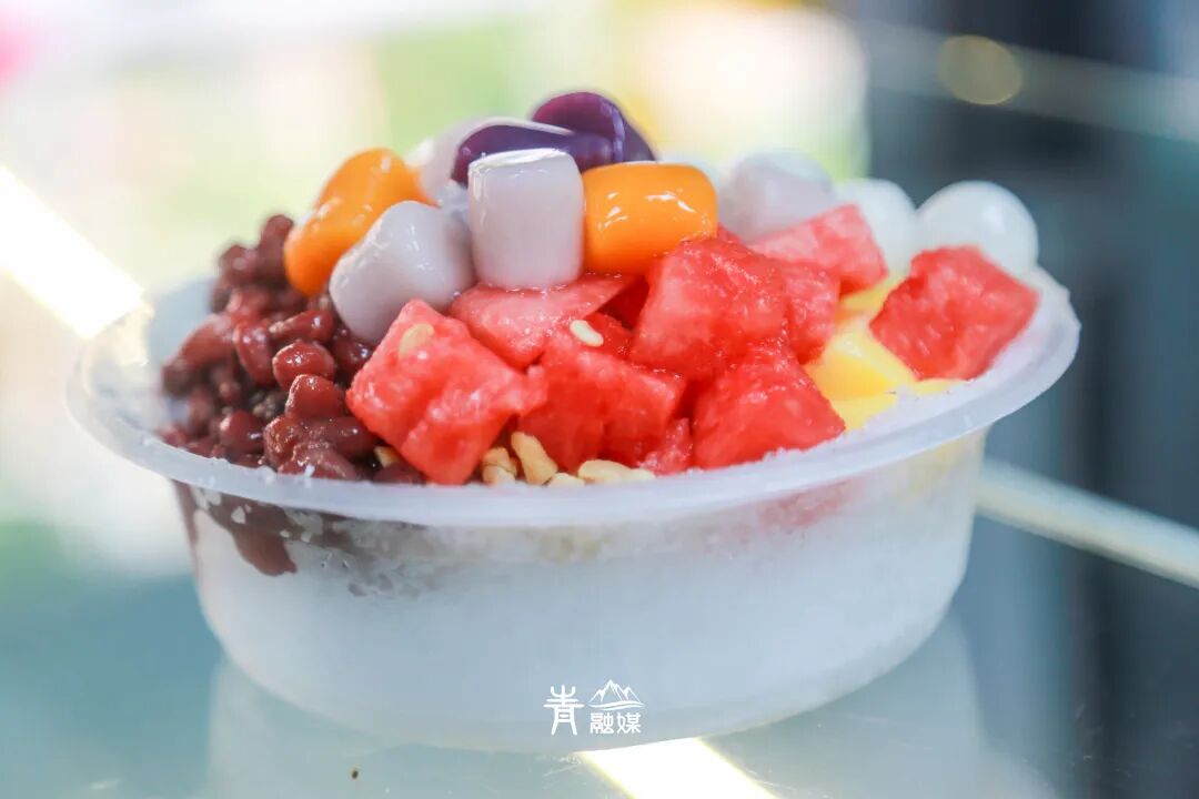 率先登场的就是满满一碗料的冰粉,芋圆、汤圆、西瓜、山楂片、花生粒、葡萄干……“浩浩荡荡”的阵仗,缤纷多彩的配色,这一碗怎能不好吃啊!