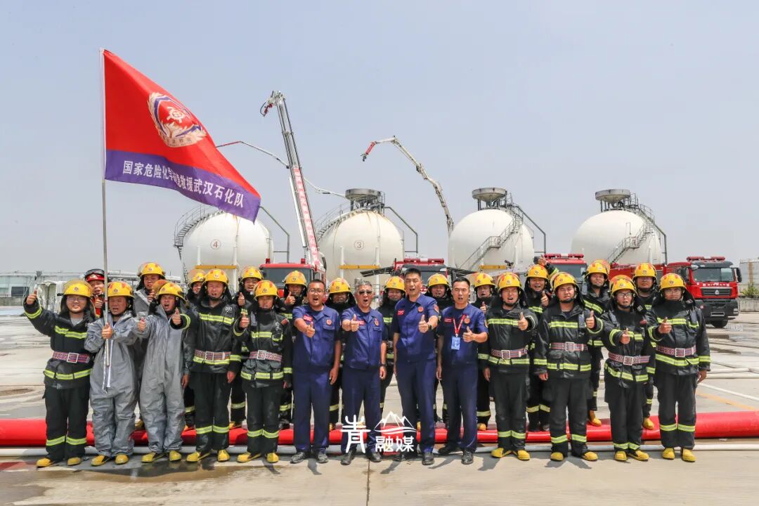 武汉石化队在极具难度的“球形储罐喷射火扑灭”科目中表现出色。面对模拟构建的物料泄漏、喷射燃烧、设施损坏等极端复杂工况,该队迅速构建“空-地-物联”立体侦察体系,精准研判关键数据。