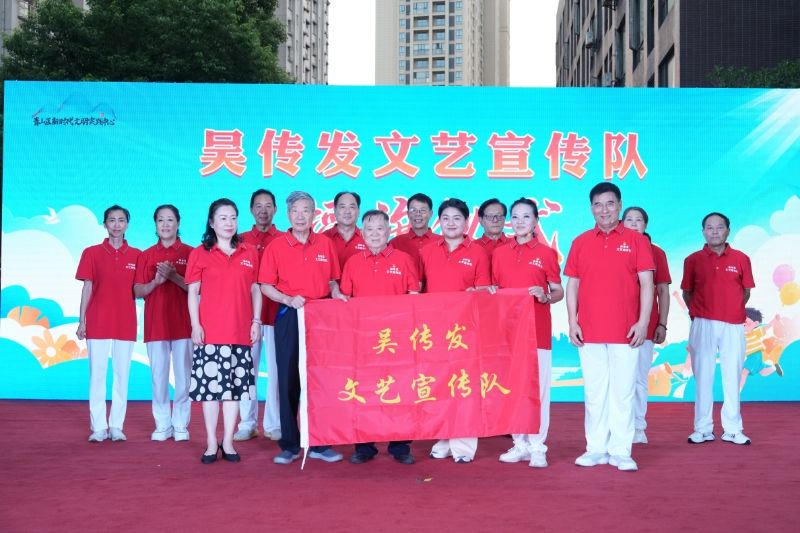 吴传发师傅已经84岁,仍在用慢板在基层宣传党的政策。为更好地传播吴传发优秀作品,青山区组建了基层文化的先锋团队—— “吴传发文艺宣传队”。在活动现场进行了授旗仪式,宣传队倾情演绎湖北慢板《日子越过越快活》。青和居社区民兵也带来了湖北慢板《报名参军我光荣》。