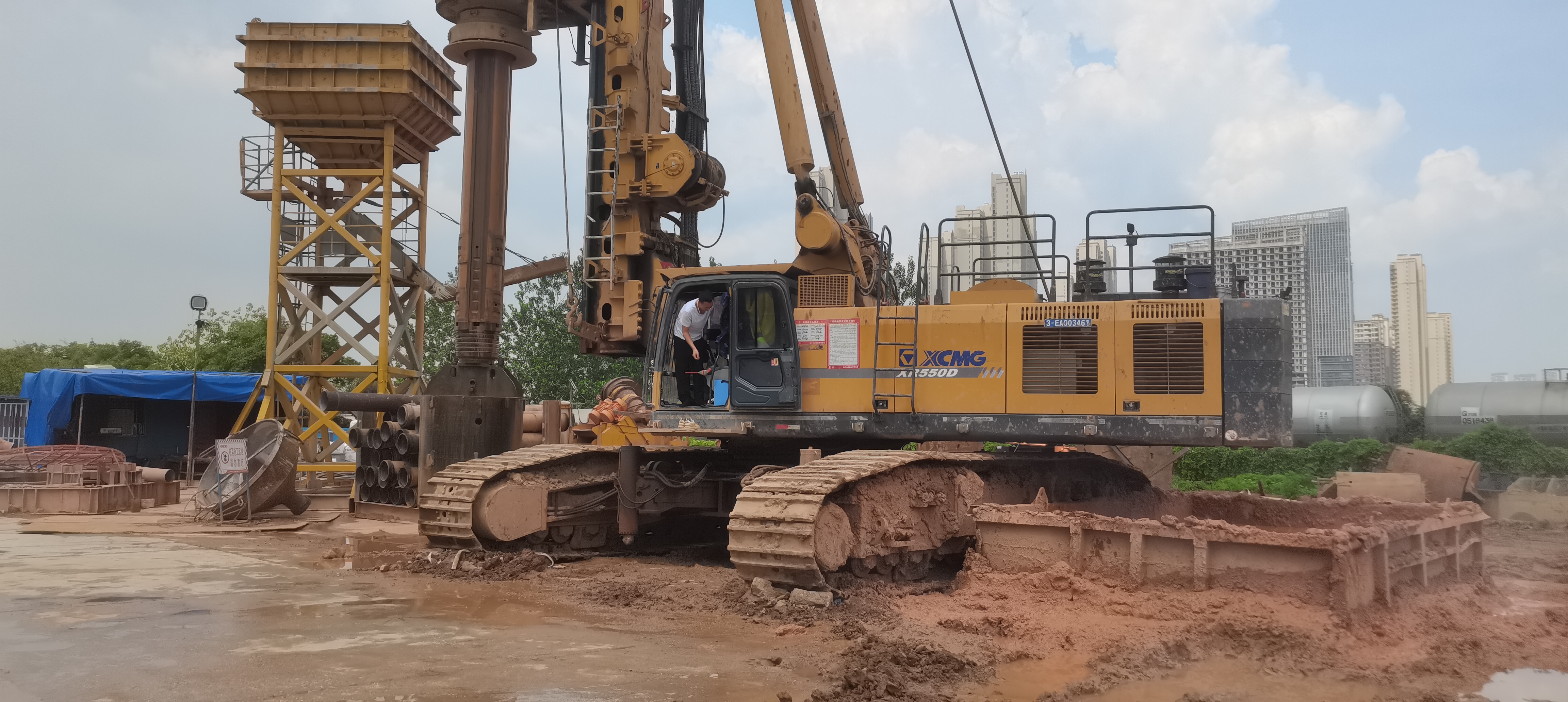 7月14日上午,长江日报记者来到该项目工地,走进围挡,便听到“哐哐”的金属撞击声——两台高耸入云的旋挖钻机正在运转。旋挖钻机的“巨无霸”履带下,钢索紧绷,钻杆带着一米多宽的合金钻头,呼啸着向地心挺进。正在钻进的是第4个主桩,已经深入76米,泥浆像被唤醒的喷泉,沿着护筒壁翻滚,把泥土染成深褐色。