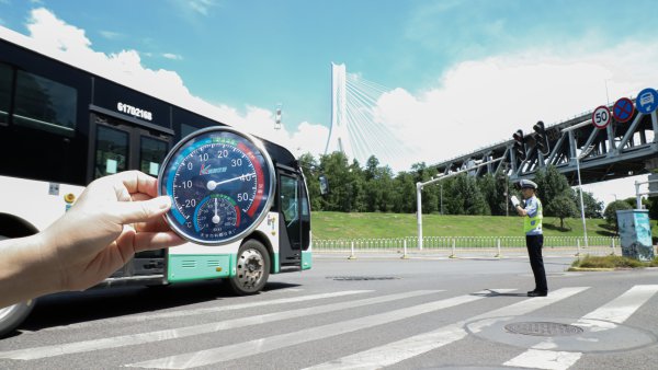 上午8时30分,户外体感温度已达到40℃。发现一名骑电动自行车的爷爷没有佩戴安全头盔,左龙随即上前提醒。