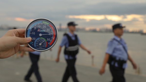 “工作日傍晚6点以后是江滩人流量的高峰,尤其是很多孩子吃完晚饭后会和家人来江边,我们都会上去提醒他们注意安全。”巡逻途中,豆大的汗珠顺着民警卢卫平的脸庞滴落,他的制服也被汗水浸湿大半。
