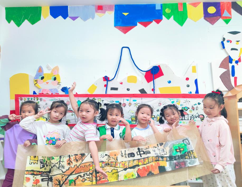 孩子们以国庆为主题,用水墨描绘心中的祖国形象。虽然笔法稚嫩,但每一笔都蕴含着对祖国的真挚情感。孩子们合作完成了一幅“我爱祖国”水墨长卷,画卷上汇聚了孩子们对祖国妈妈的爱,画面上展现了孩子对祖国的多元理解。