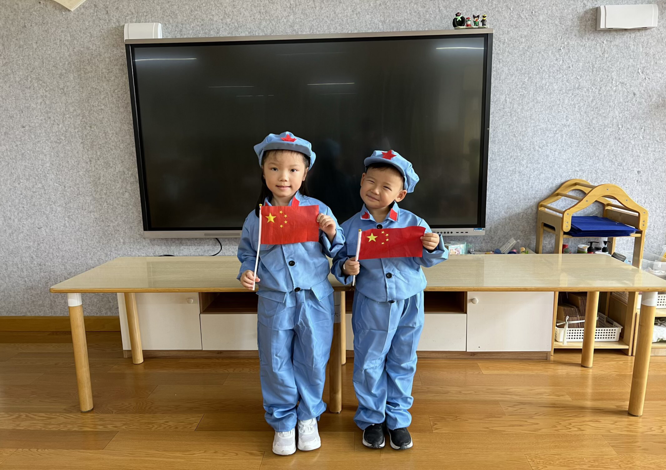 “国旗国旗多美丽,五颗星星照大地......”瞧,9月25日青山区第二幼儿园里飘荡着稚嫩而清澈的歌声。孩子们手举着五星红旗,用最纯真的歌声唱出对祖国妈妈的第一声祝福。